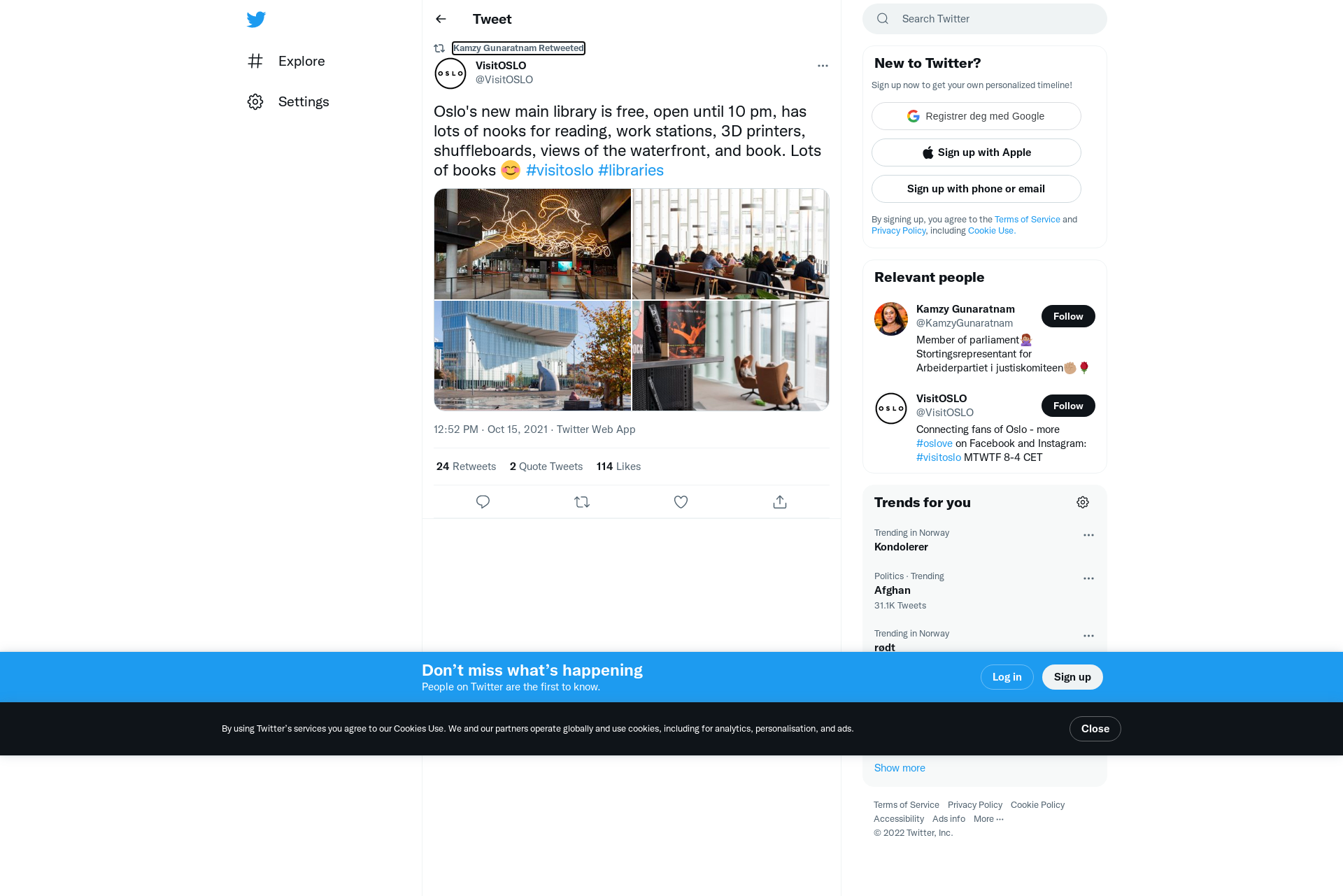 RT @VisitOSLO: Oslo's new main library is free, open until 10 pm, has lots of nooks for reading, work stations, 3D printers, shuffleboards, views of the waterfront, and book. Lots of books 😊 #visitoslo #libraries https://t.co/gZu7Pkr7Xh