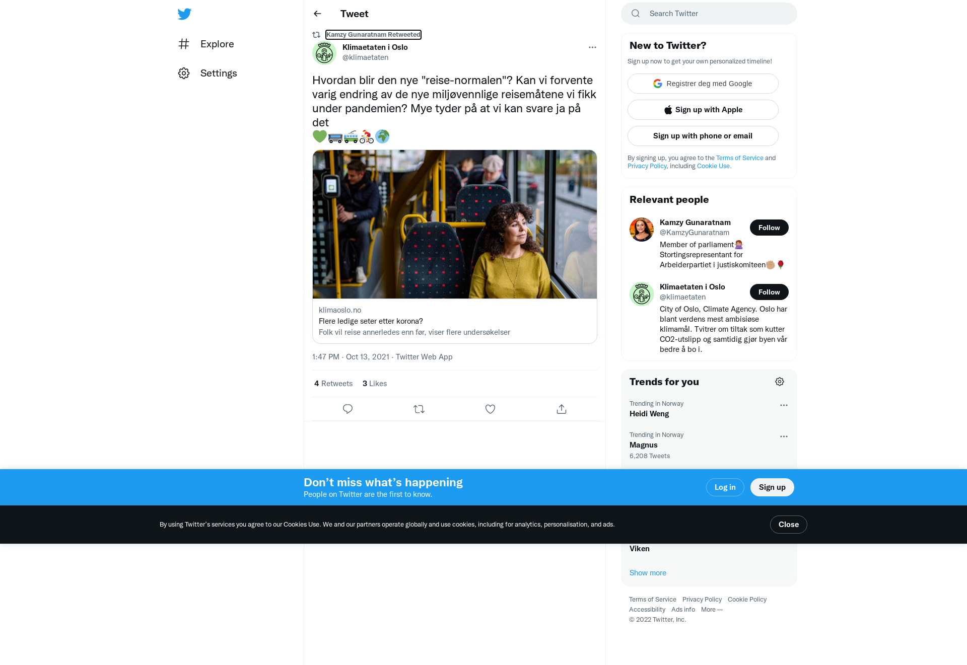 RT @klimaetaten: Hvordan blir den nye "reise-normalen"? Kan vi forvente varig endring av de nye miljøvennlige reisemåtene vi fikk under pandemien? Mye tyder på at vi kan svare ja på det \n💚🚌🚎🚴♀️🌍\nhttps://t.co/PfdCSJEg0K