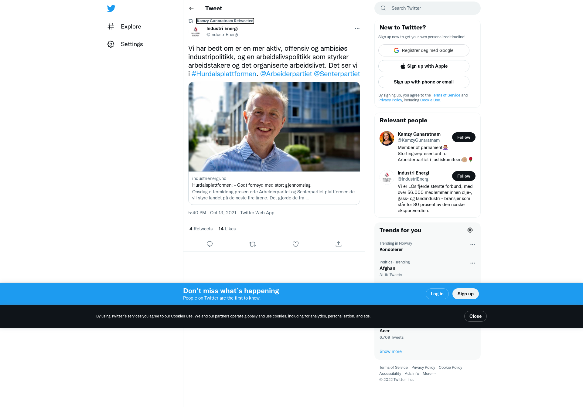 RT @IndustriEnergi: Vi har bedt om er en mer aktiv, offensiv og ambisiøs industripolitikk, og en arbeidslivspolitikk som styrker arbeidstakere og det organiserte arbeidslivet. Det ser vi i #Hurdalsplattformen. @Arbeiderpartiet @Senterpartiet \nhttps://t.co/1AZc4bhoTx