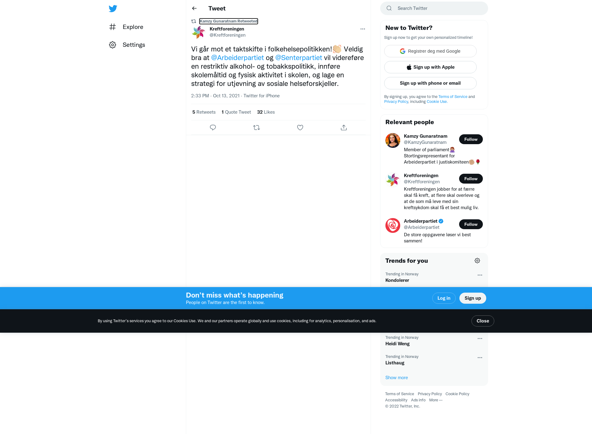 RT @Kreftforeningen: Vi går mot et taktskifte i folkehelsepolitikken!👏🏼 Veldig bra at @Arbeiderpartiet og @Senterpartiet vil videreføre en restriktiv alkohol- og tobakkspolitikk, innføre skolemåltid og fysisk aktivitet i skolen, og lage en strategi for utjevning av sosiale helseforskjeller.