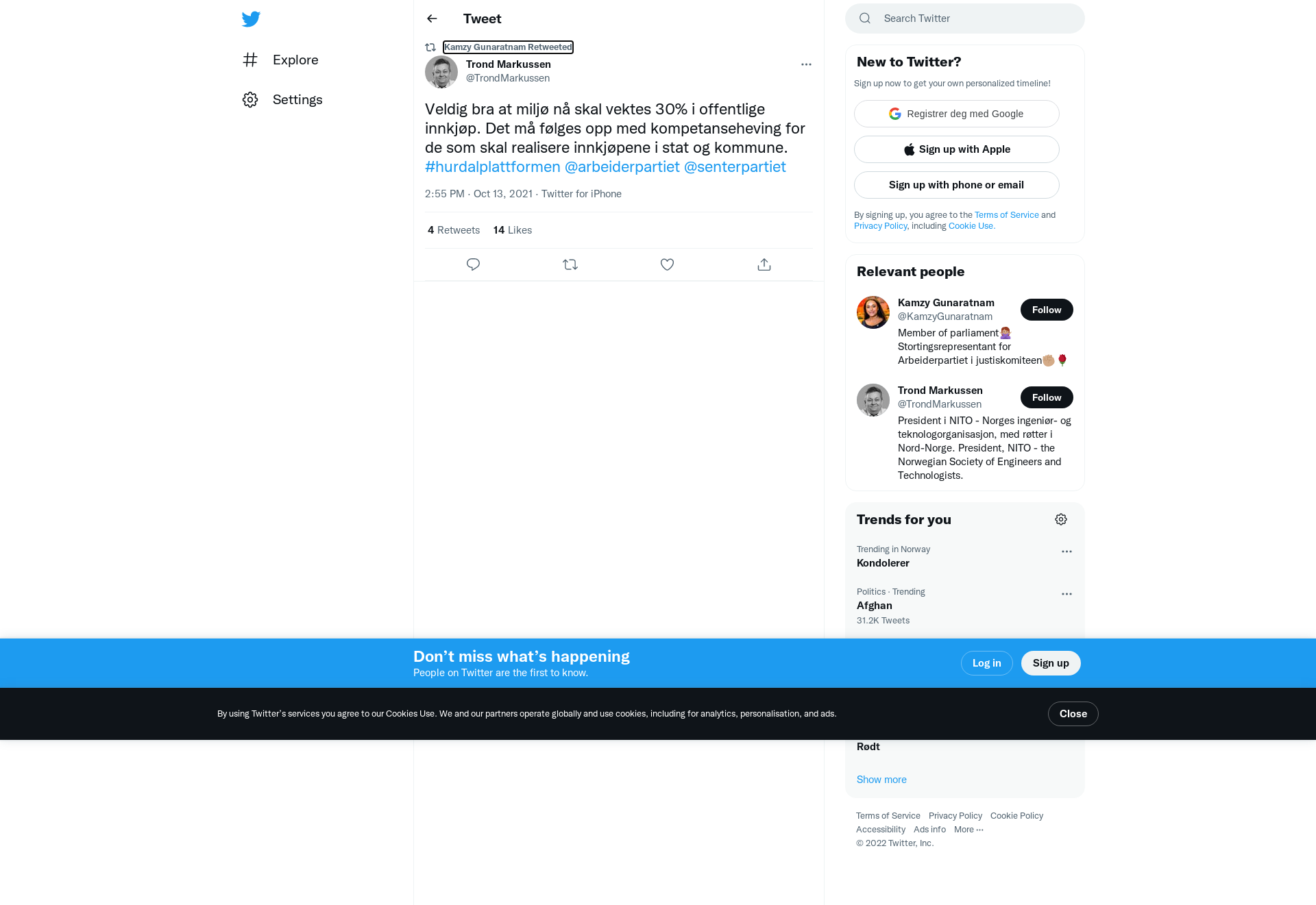 RT @TrondMarkussen: Veldig bra at miljø nå skal vektes 30% i offentlige innkjøp. Det må følges opp med kompetanseheving for de som skal realisere innkjøpene i stat og kommune. #hurdalplattformen @arbeiderpartiet @senterpartiet
