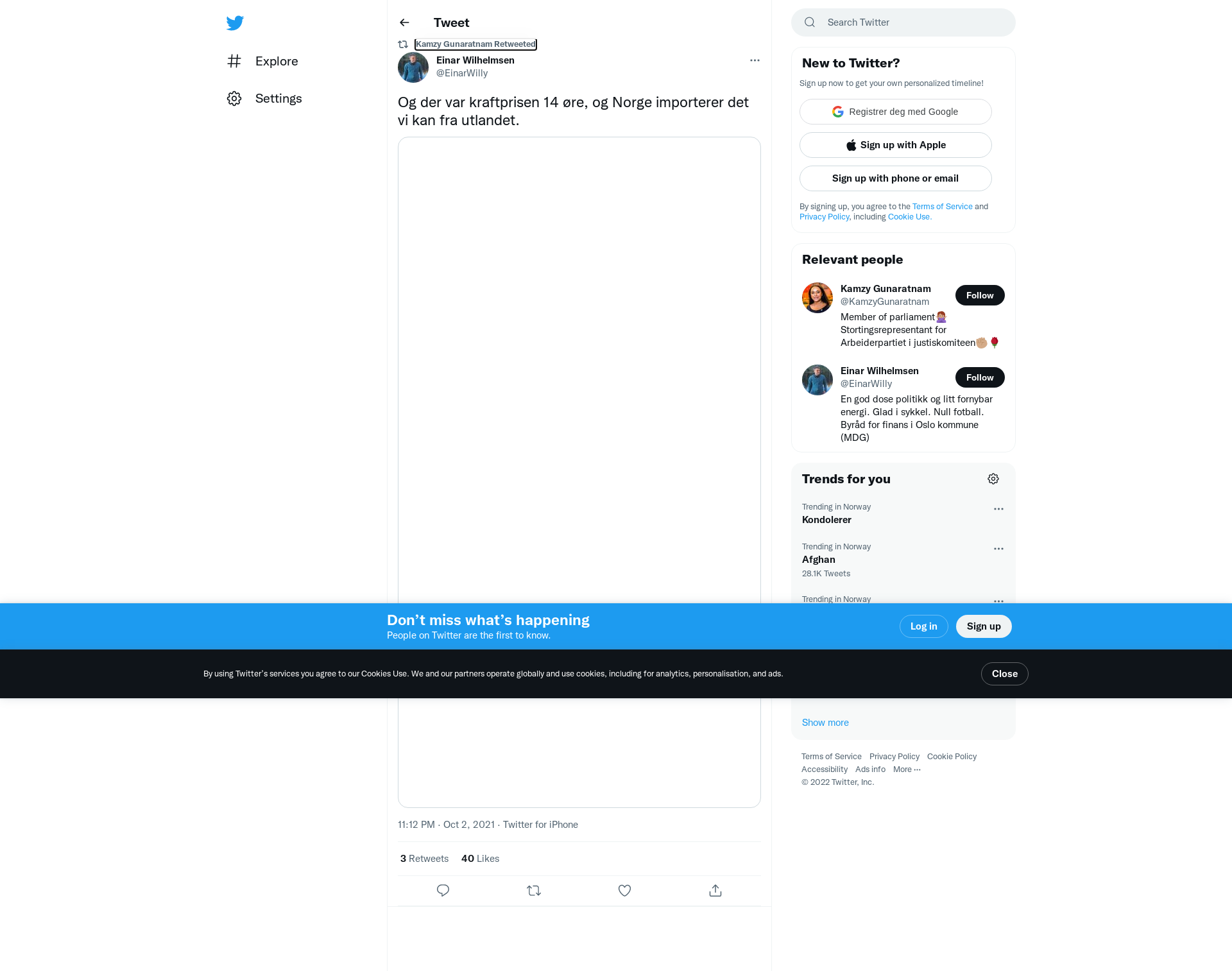 RT @EinarWilly: Og der var kraftprisen 14 øre, og Norge importerer det vi kan fra utlandet. https://t.co/wrmcgSroyr