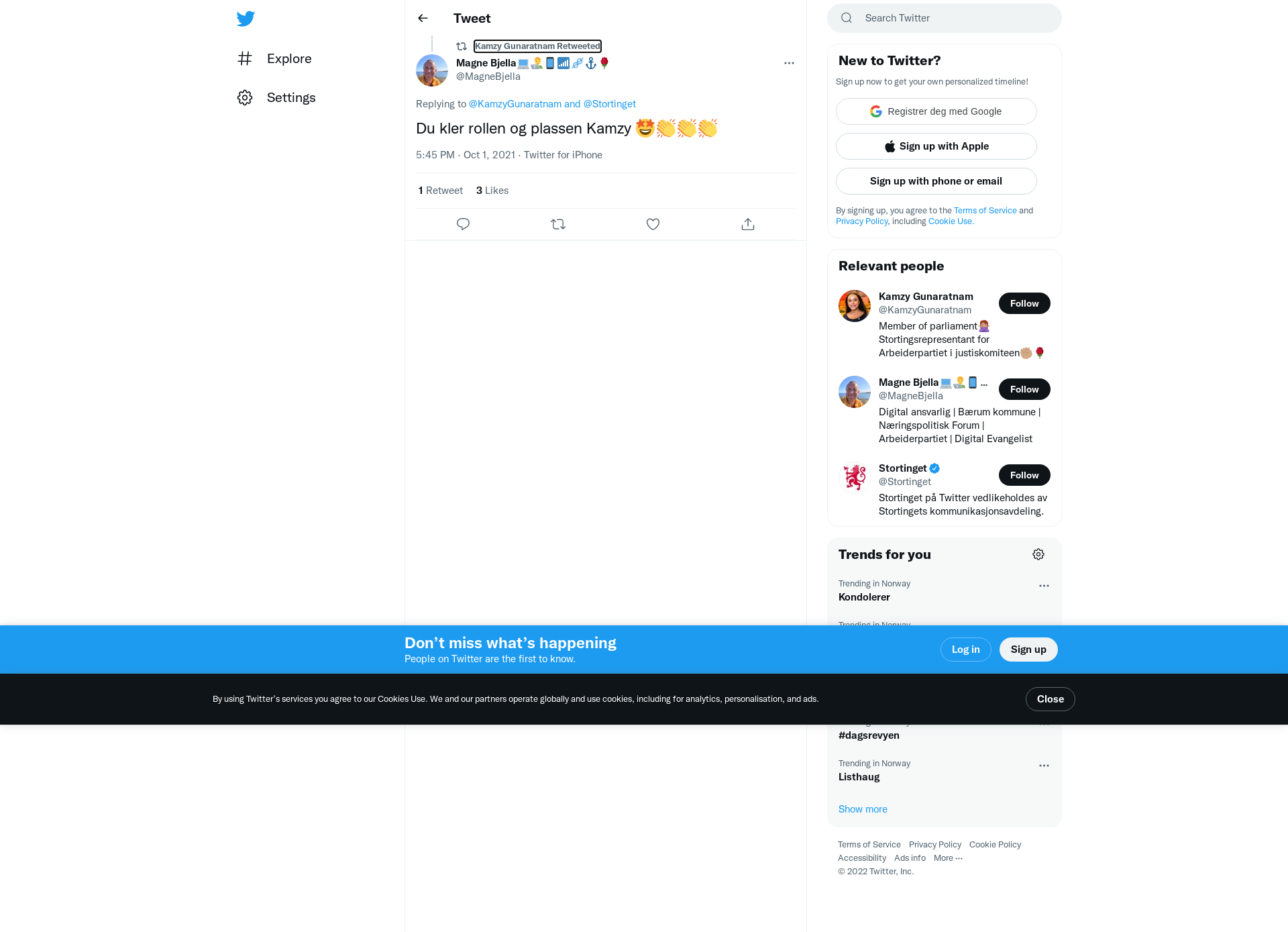 RT @MagneBjella: @KamzyGunaratnam @Stortinget Du kler rollen og plassen Kamzy 🤩👏👏👏