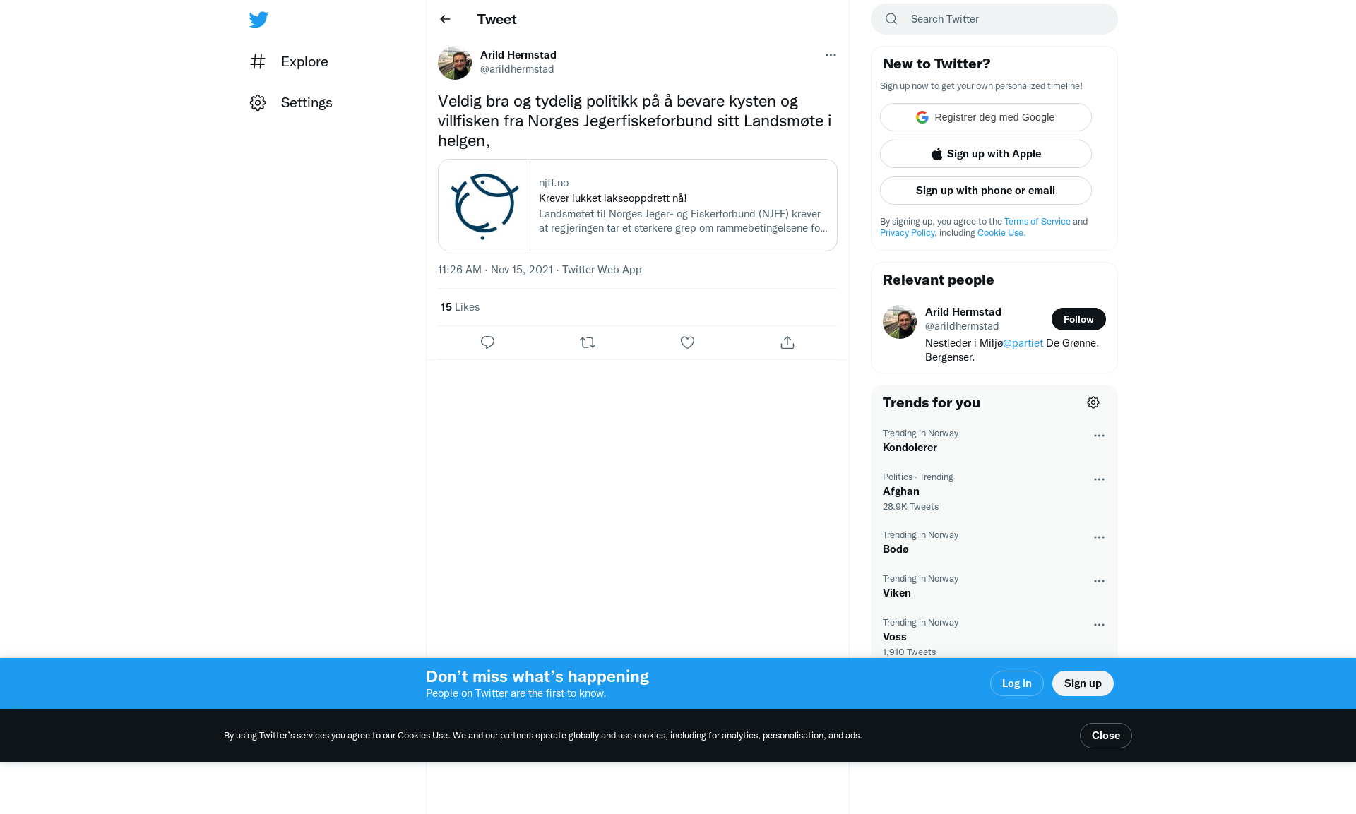 Landsmøtet til Norges Jeger- og Fiskerforbund (NJFF) krever at regjeringen tar et sterkere grep om rammebetingelsene for oppdrettsnæringen. All videre vekst i næringen, både nye anlegg og utvidelse av eksisterende, må skje med bruk av lukket teknologi allerede fra 2022. I tillegg må det skje en overgang til lukkede løsninger for alle eksisterende oppdrettsanlegg innen 2030.