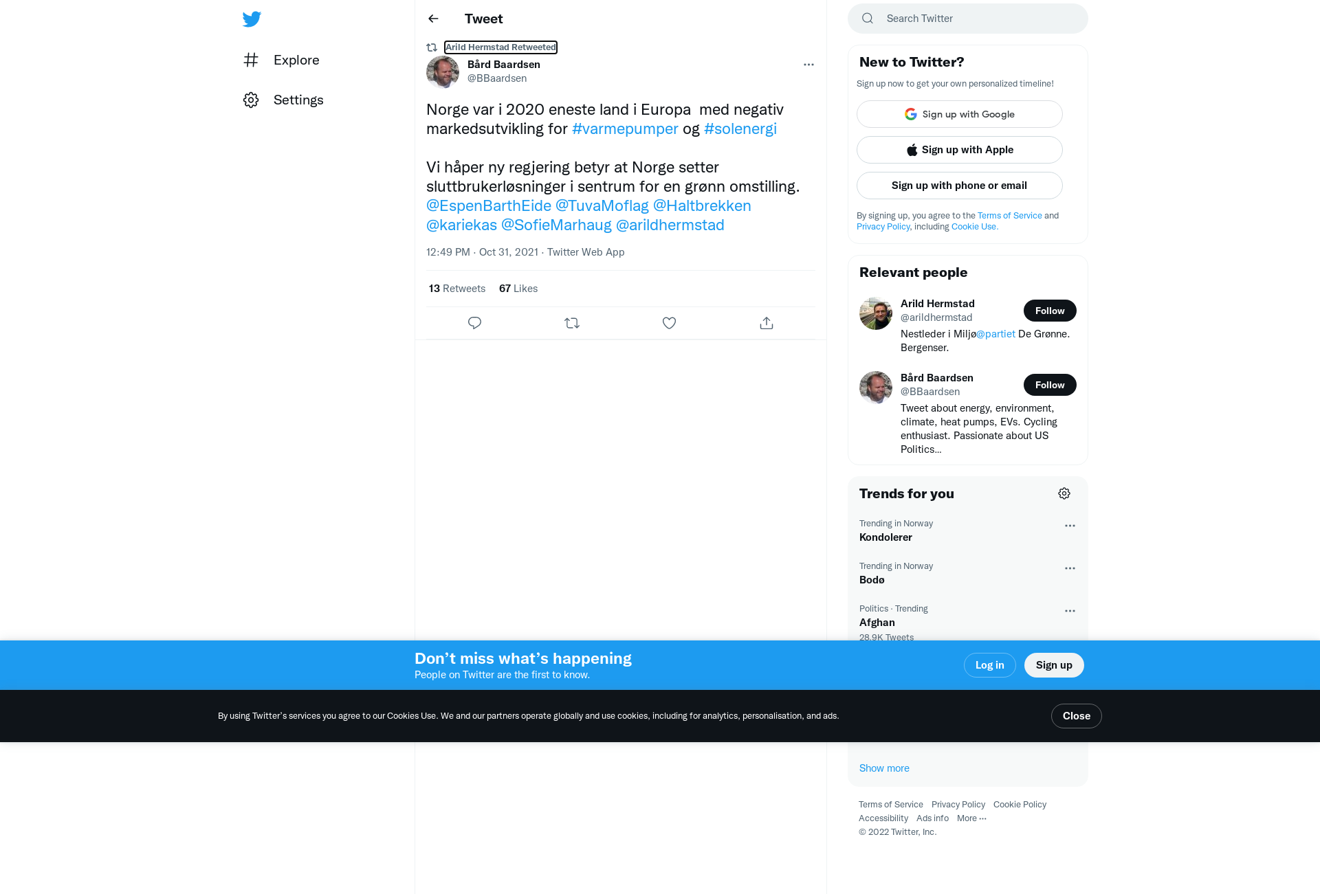 RT @BBaardsen: Norge var i 2020 eneste land i Europa med negativ markedsutvikling for #varmepumper og #solenergi\n\nVi håper ny regjering be…
