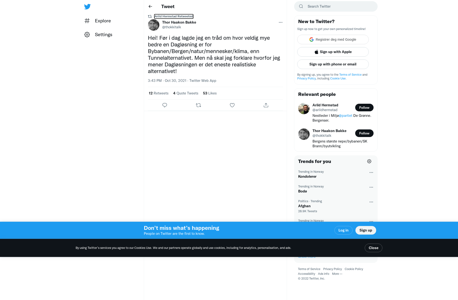 RT @thokkitalk: Hei! Før i dag lagde jeg en tråd om hvor veldig mye bedre en Dagløsning er for Bybanen/Bergen/natur/mennesker/klima, enn Tunnelalternativet. Men nå skal jeg forklare hvorfor jeg mener Dagløsningen er det eneste realistiske alternativet!