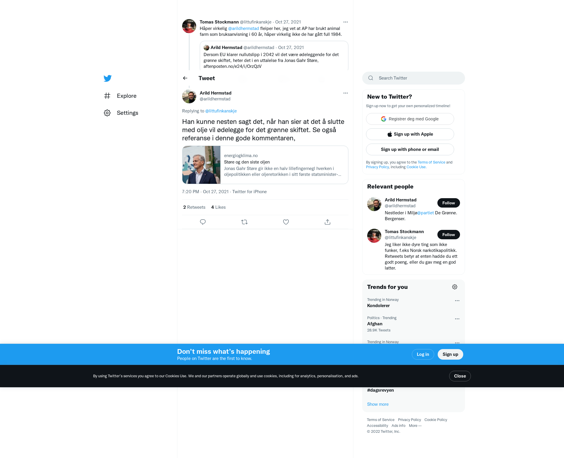 @littufinkanskje Han kunne nesten sagt det, når han sier at det å slutte med olje vil ødelegge for det grønne skiftet. Se også referanse i denne gode kommentaren, https://t.co/dZKWJhE5CW