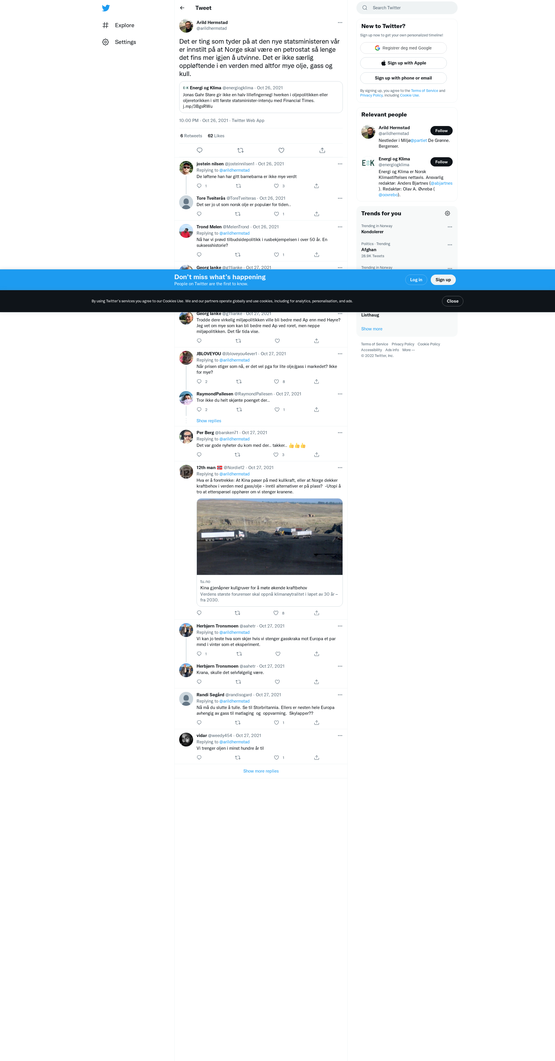 Det er ting som tyder på at den nye statsministeren vår er innstilt på at Norge skal være en petrostat så lenge det fins mer igjen å utvinne. Det er ikke særlig oppløftende i en verden med altfor mye olje, gass og kull.