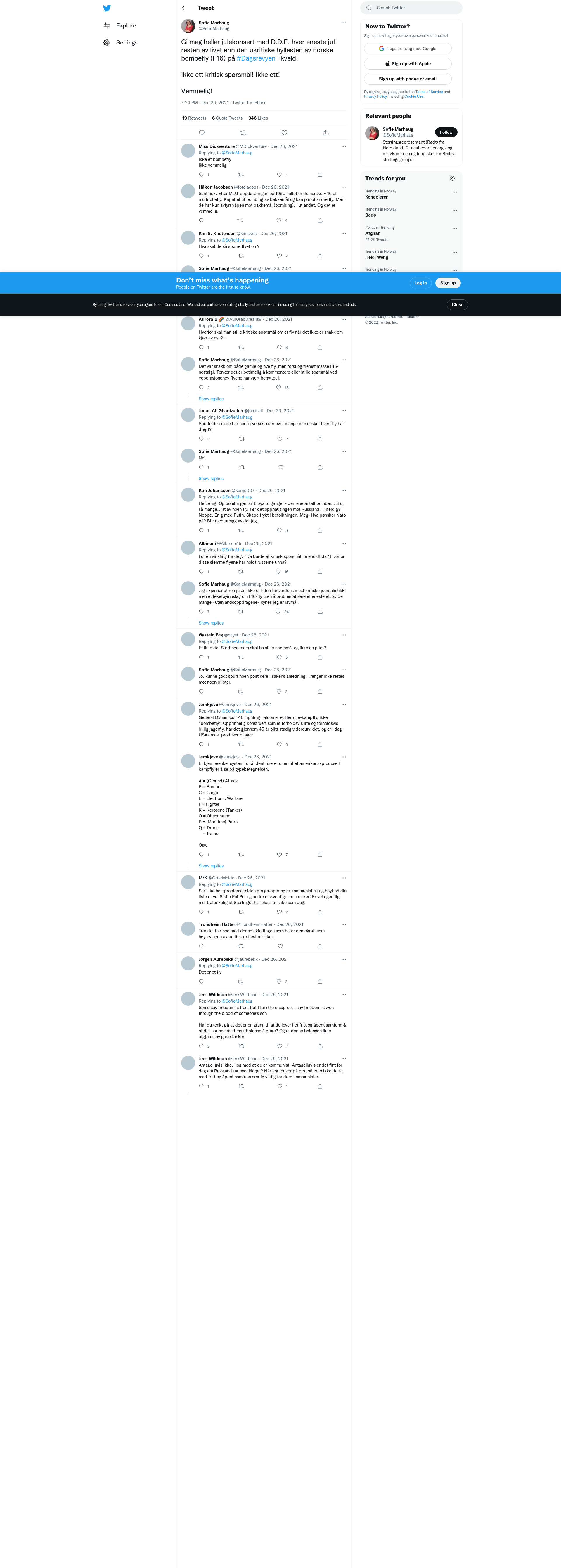 Gi meg heller julekonsert med D.D.E. hver eneste jul resten av livet enn den ukritiske hyllesten av norske bombefly (F16) på #Dagsrevyen i kveld!\n\nIkke ett kritisk spørsmål! Ikke ett!\n\nVemmelig!