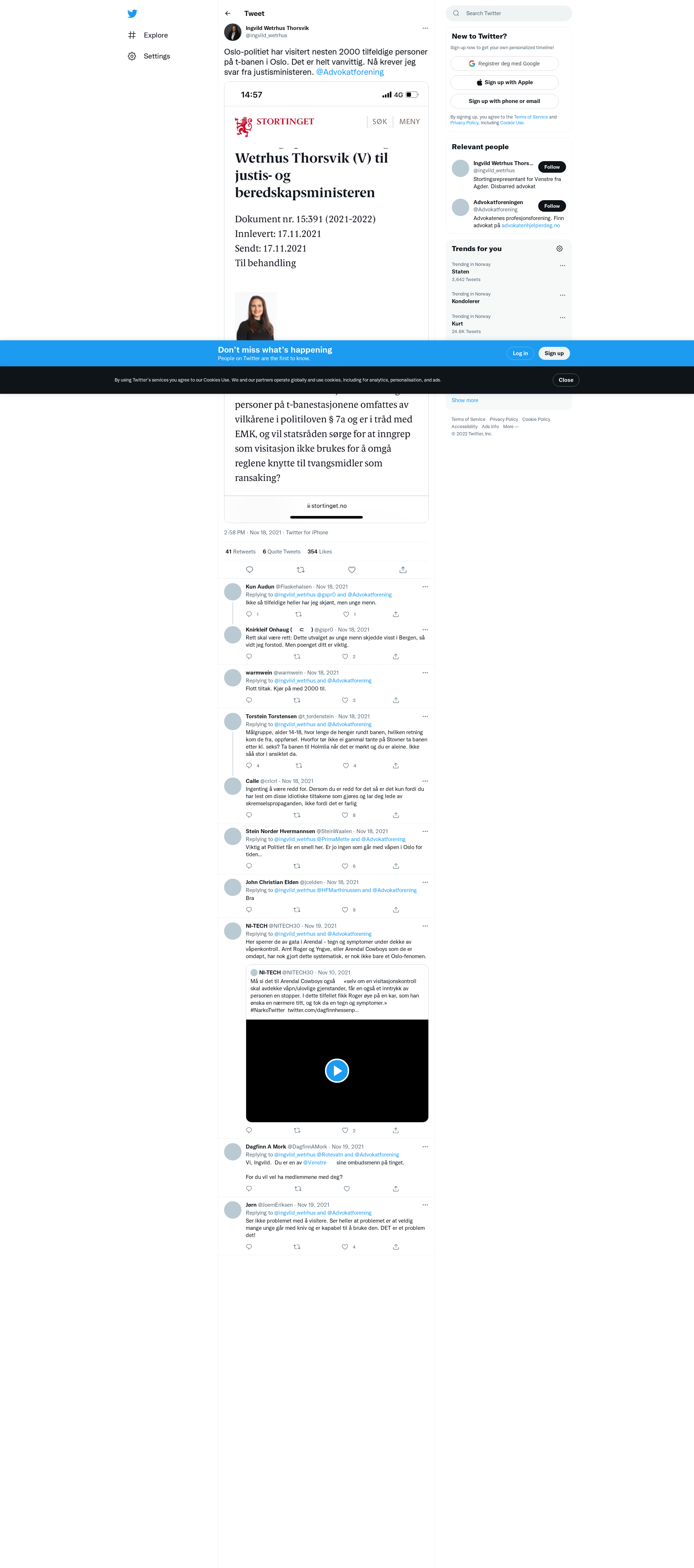 Oslo-politiet har visitert nesten 2000 tilfeldige personer på t-banen i Oslo. Det er helt vanvittig. Nå krever jeg svar fra justisministeren. @Advokatforening https://t.co/r21wNowUFq