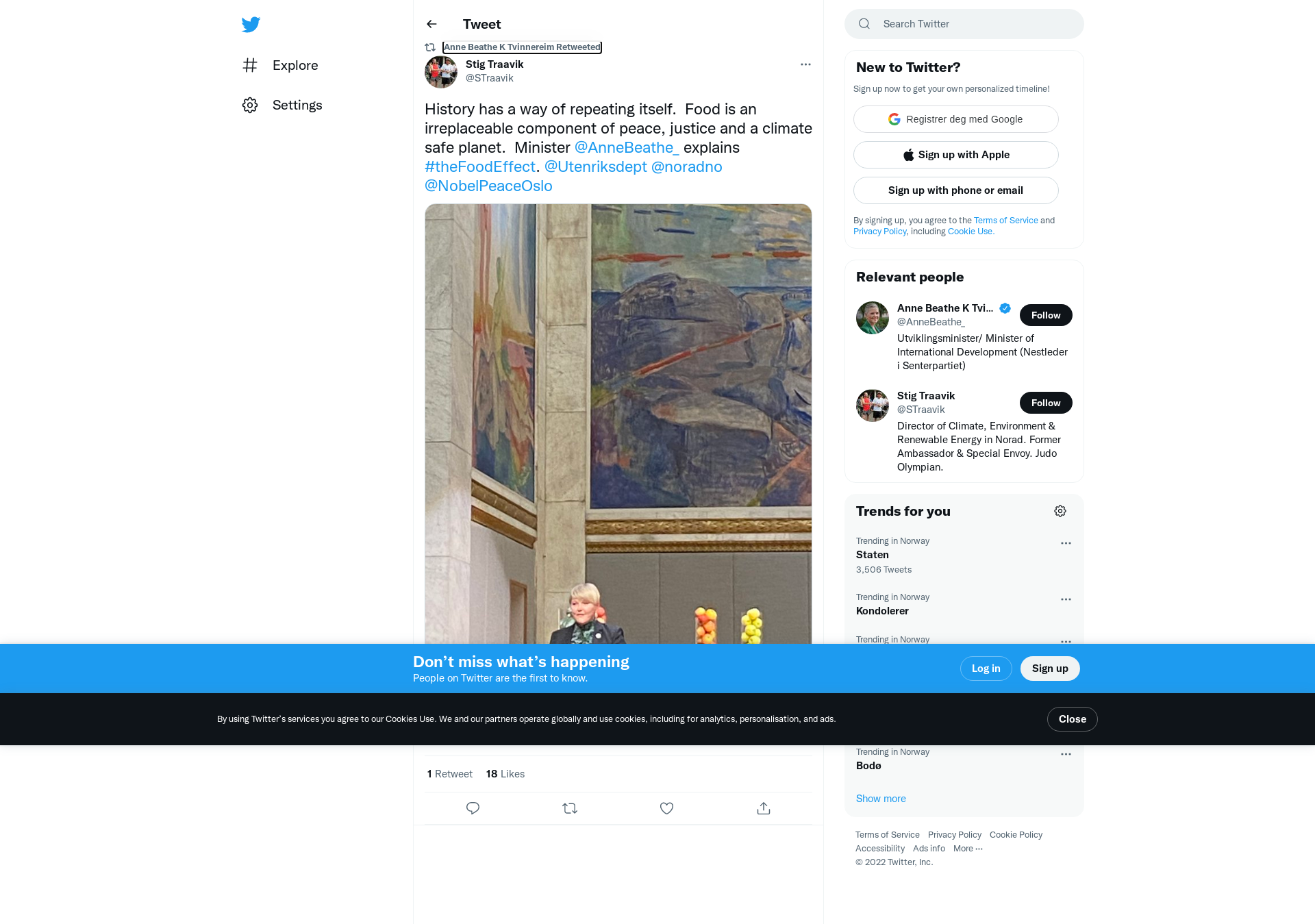 RT @STraavik: History has a way of repeating itself. Food is an irreplaceable component of peace, justice and a climate safe planet. Minister @AnneBeathe_ explains #theFoodEffect. @Utenriksdept @noradno @NobelPeaceOslo https://t.co/xG1bRsnW74