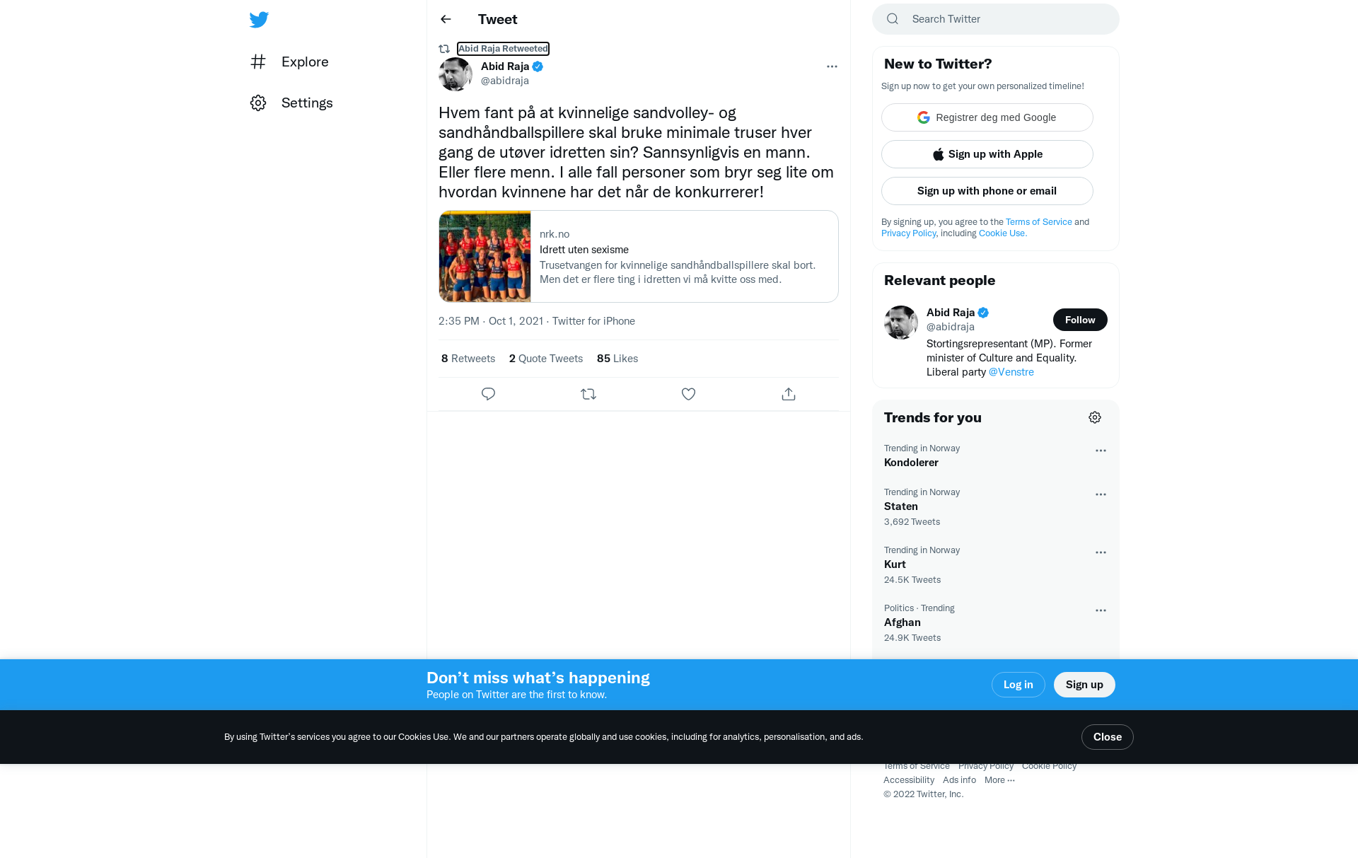 RT @abidraja: Hvem fant på at kvinnelige sandvolley- og sandhåndballspillere skal bruke minimale truser hver gang de utøver idretten sin? Sannsynligvis en mann. Eller flere menn. I alle fall personer som bryr seg lite om hvordan kvinnene har det når de konkurrerer! https://t.co/heg3NvXw8q