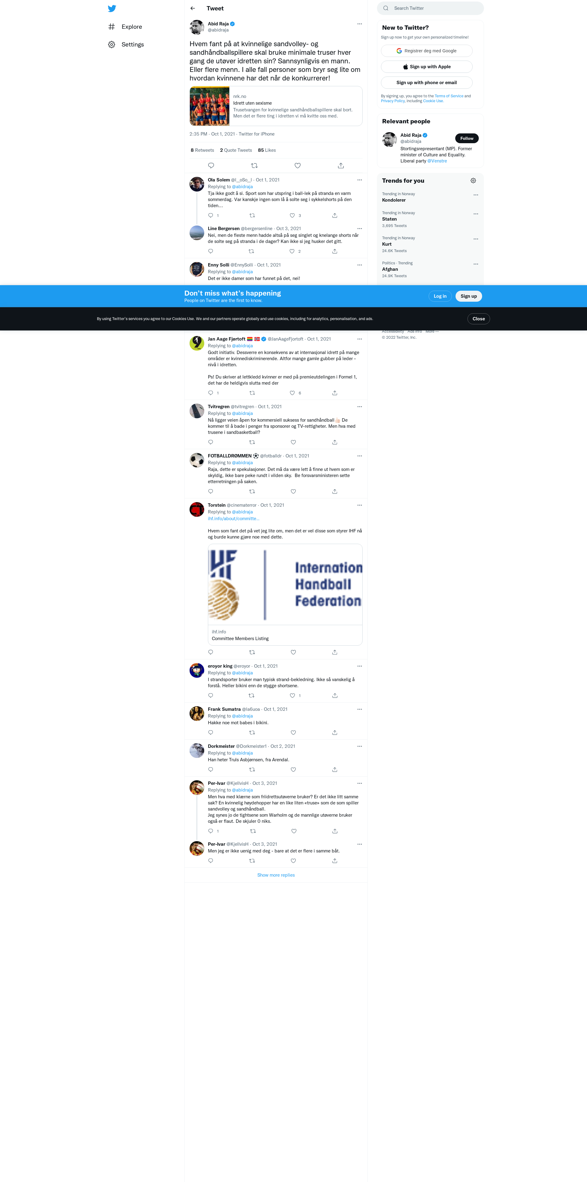 Hvem fant på at kvinnelige sandvolley- og sandhåndballspillere skal bruke minimale truser hver gang de utøver idretten sin? Sannsynligvis en mann. Eller flere menn. I alle fall personer som bryr seg lite om hvordan kvinnene har det når de konkurrerer! https://t.co/heg3NvXw8q