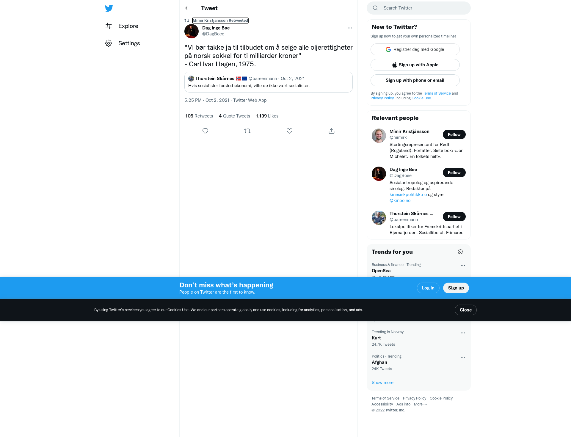 RT @DagBoee: "Vi bør takke ja til tilbudet om å selge alle oljerettigheter på norsk sokkel for ti milliarder kroner" \n- Carl Ivar Hagen, 19…