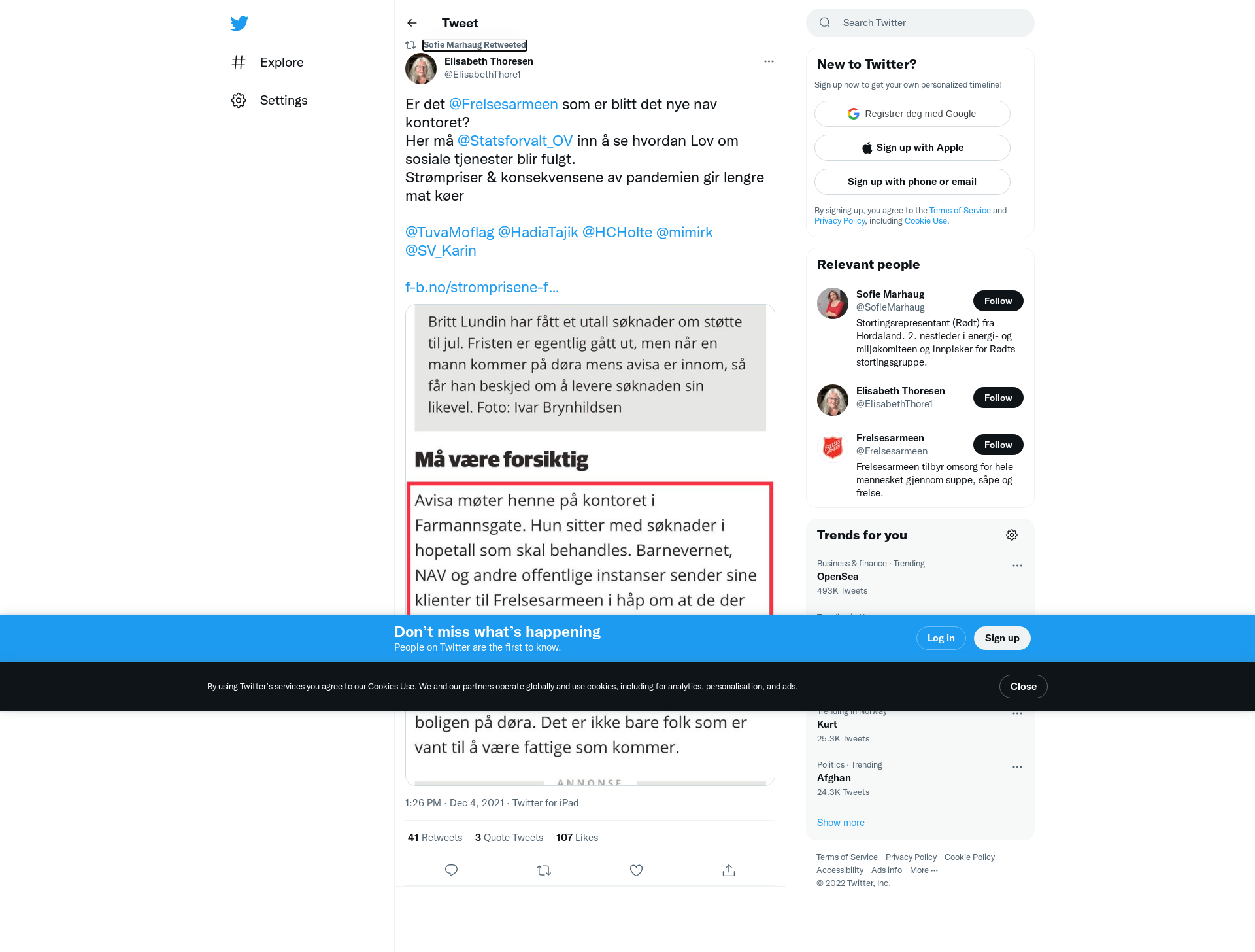 RT @ElisabethThore1: Er det @Frelsesarmeen som er blitt det nye nav kontoret? \nHer må @Statsforvalt_OV inn å se hvordan Lov om sosiale tjen…