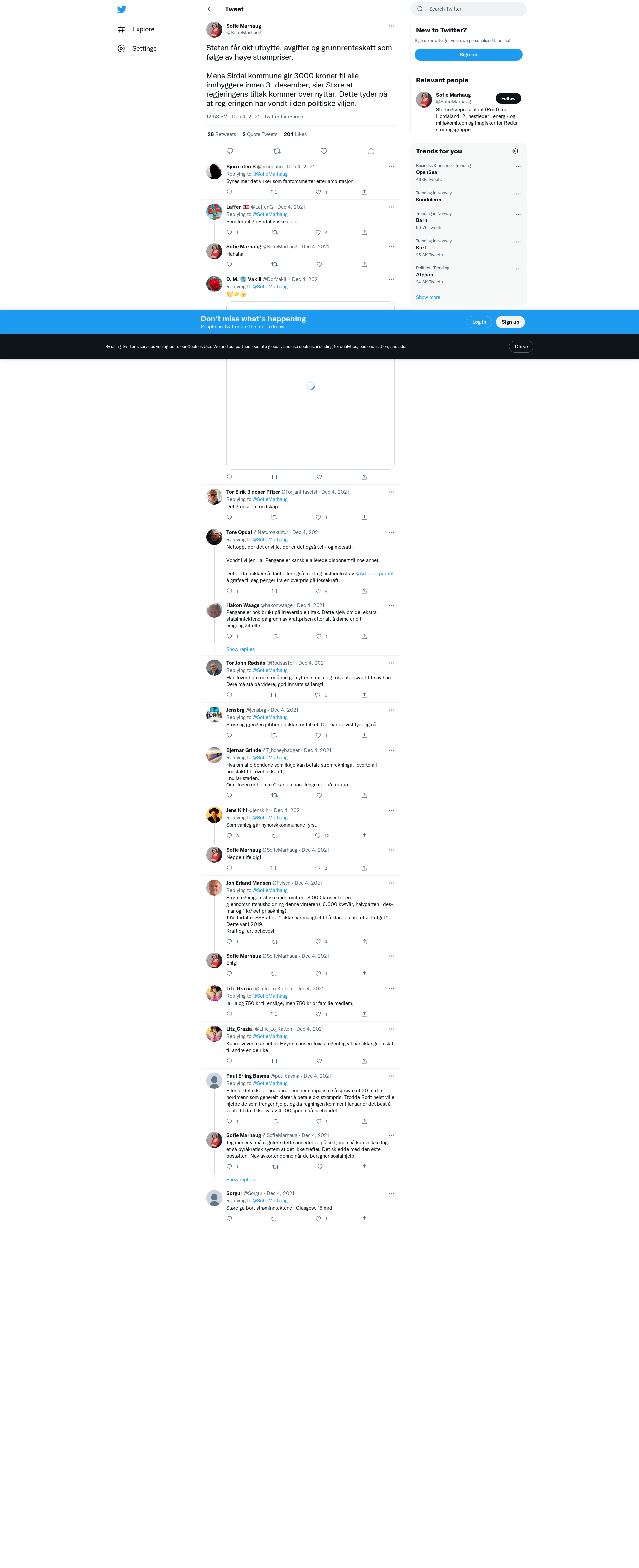 Staten får økt utbytte, avgifter og grunnrenteskatt som følge av høye strømpriser. \n\nMens Sirdal kommune gir 3000 kroner til alle innbyggere innen 3. desember, sier Støre at regjeringens tiltak kommer over nyttår. Dette tyder på at regjeringen har vondt i den politiske viljen.