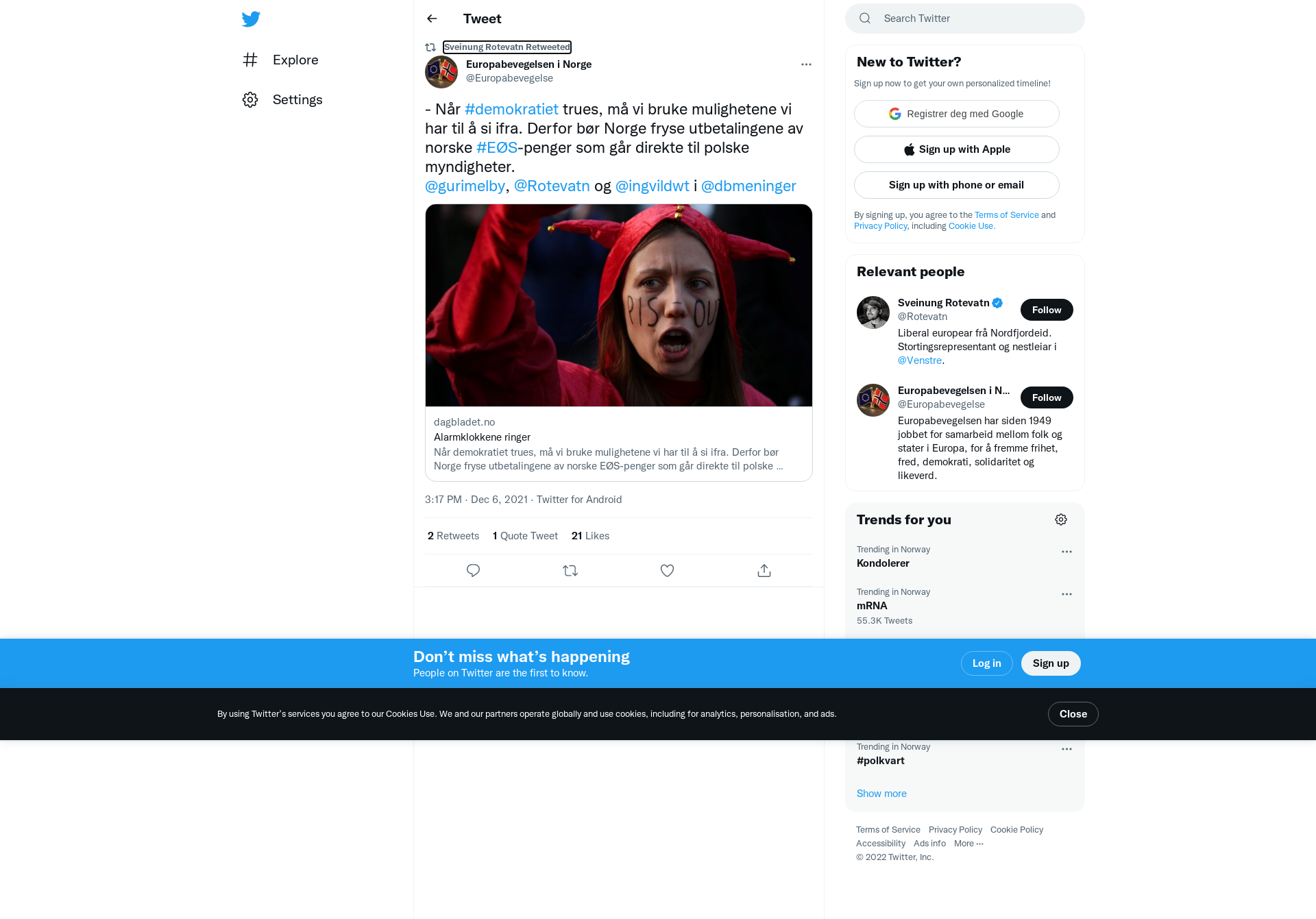 RT @Europabevegelse: - Når #demokratiet trues, må vi bruke mulighetene vi har til å si ifra. Derfor bør Norge fryse utbetalingene av norske #EØS-penger som går direkte til polske myndigheter.\n@gurimelby, @Rotevatn og @ingvildwt i @dbmeninger\nhttps://t.co/XiblJKcJId