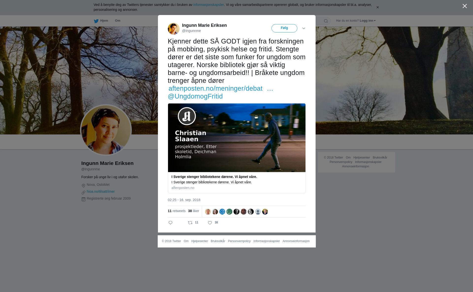 RT @Ingunnme: Kjenner dette SÅ GODT igjen fra forskningen på mobbing, psykisk helse og fritid. Stengte dører er det siste som funker for ungdom som utagerer. Norske bibliotek gjør så viktig barne- og ungdomsarbeid!! | Bråkete ungdom trenger åpne dører https://t.co/rOK2XpD5Tp @UngdomogFritid