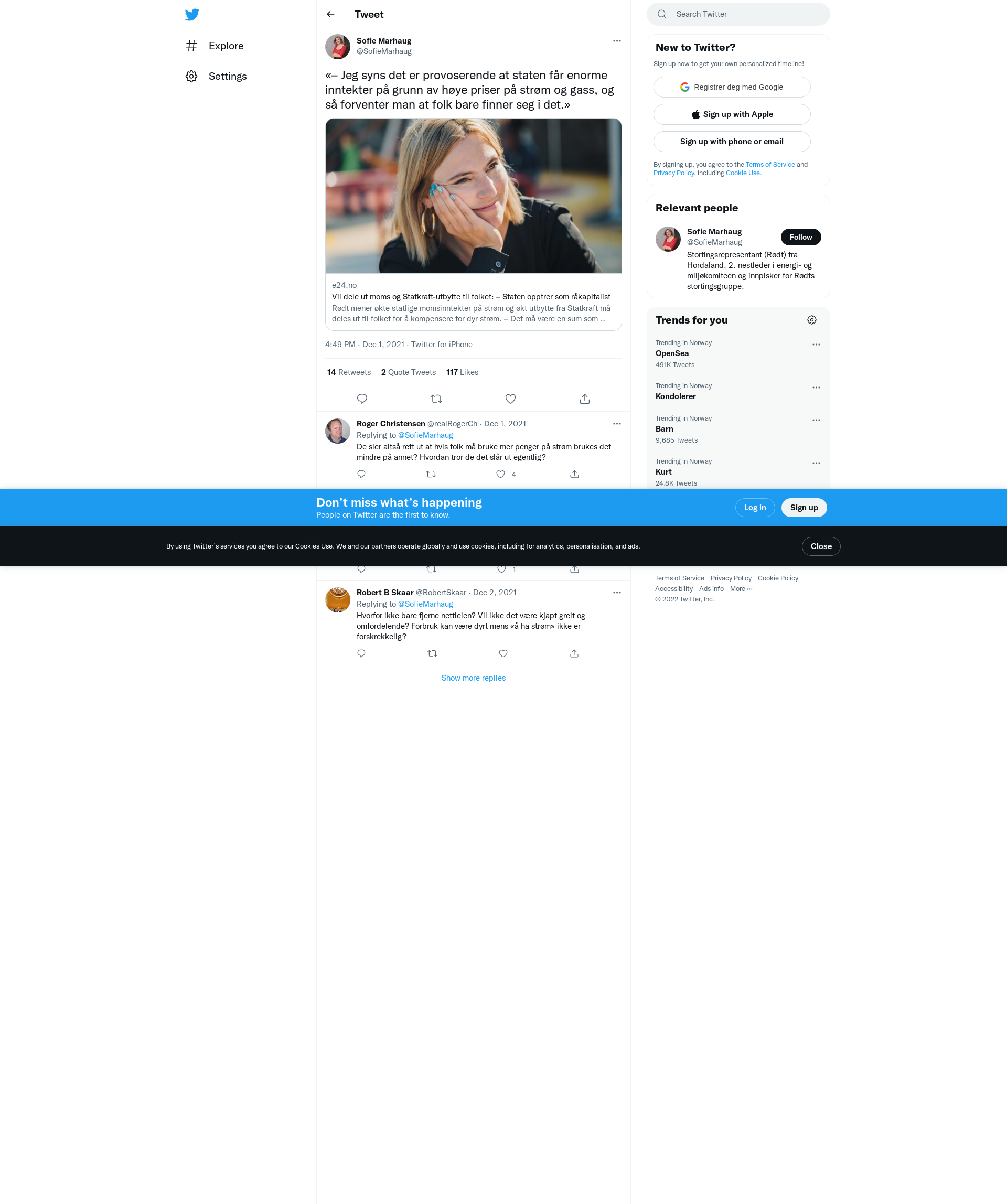 Rødt mener økte statlige momsinntekter på strøm og økt utbytte fra Statkraft må deles ut til folket for å kompensere for dyr strøm. – Det må være en sum som monner, sier Sofie Marhaug (R).