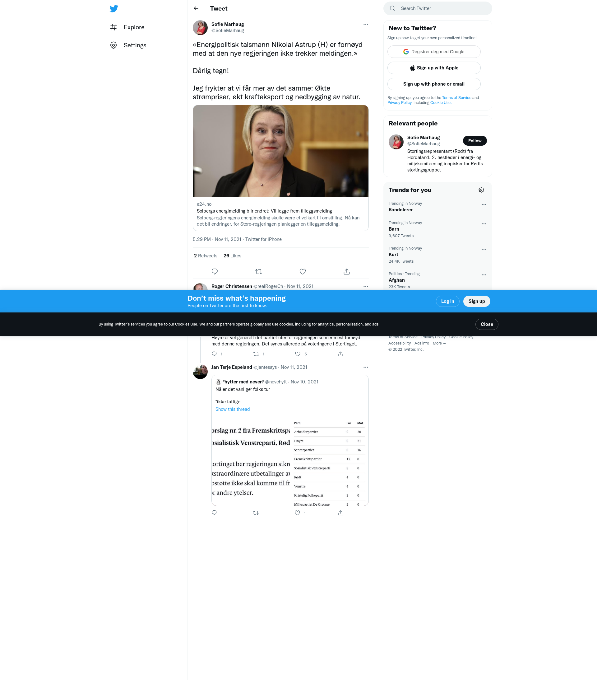 «Energipolitisk talsmann Nikolai Astrup (H) er fornøyd med at den nye regjeringen ikke trekker meldingen.»\n\nDårlig tegn! \n\nJeg frykter at vi får mer av det samme: Økte strømpriser, økt krafteksport og nedbygging av natur. \n\nhttps://t.co/a6h7drfg3m