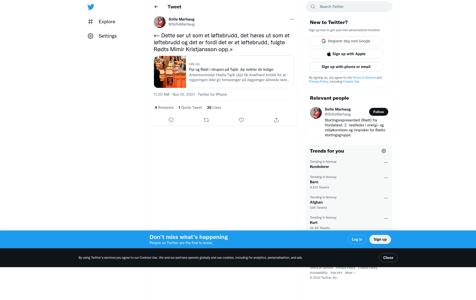 «– Dette ser ut som et løftebrudd, det høres ut som et løftebrudd og det er fordi det er et løftebrudd, fulgte Rødts Mimir Kristjansson opp.»\n\nhttps://t.co/oCdWvzSEfJ
