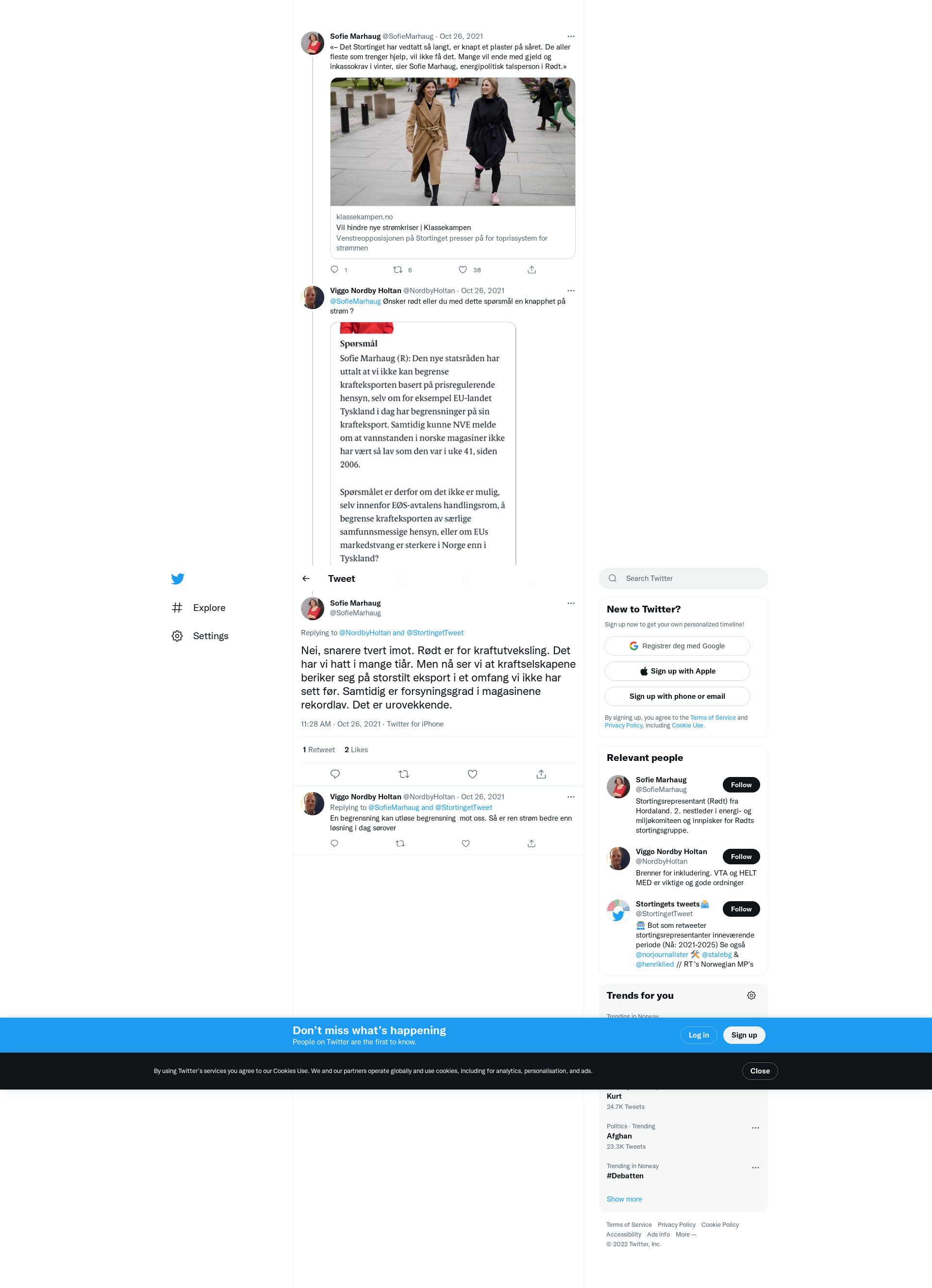 @NordbyHoltan @StortingetTweet Nei, snarere tvert imot. Rødt er for kraftutveksling. Det har vi hatt i mange tiår. Men nå ser vi at kraftselskapene beriker seg på storstilt eksport i et omfang vi ikke har sett før. Samtidig er forsyningsgrad i magasinene rekordlav. Det er urovekkende.