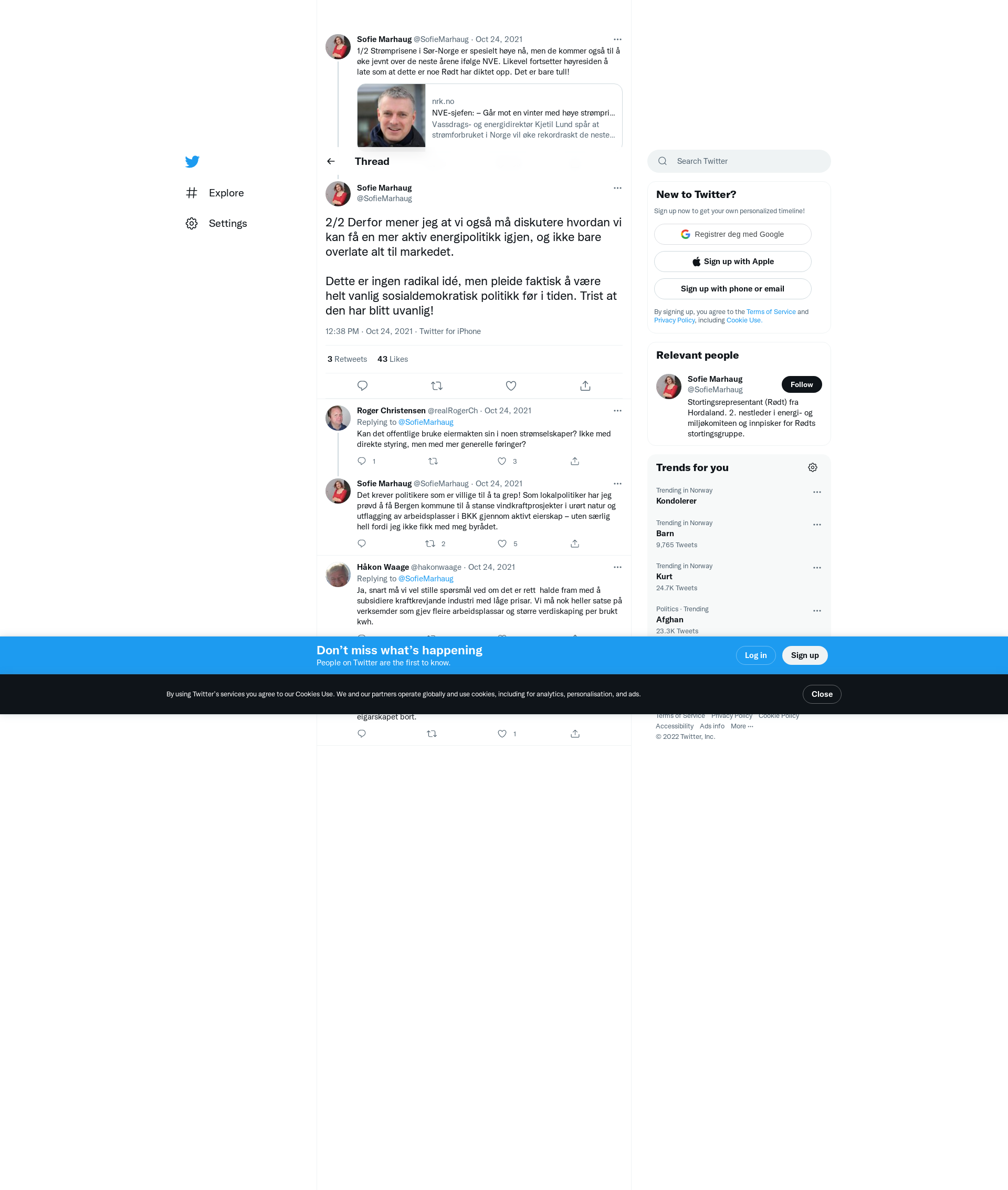 2/2 Derfor mener jeg at vi også må diskutere hvordan vi kan få en mer aktiv energipolitikk igjen, og ikke bare overlate alt til markedet. \n\nDette er ingen radikal idé, men pleide faktisk å være helt vanlig sosialdemokratisk politikk før i tiden. Trist at den har blitt uvanlig!