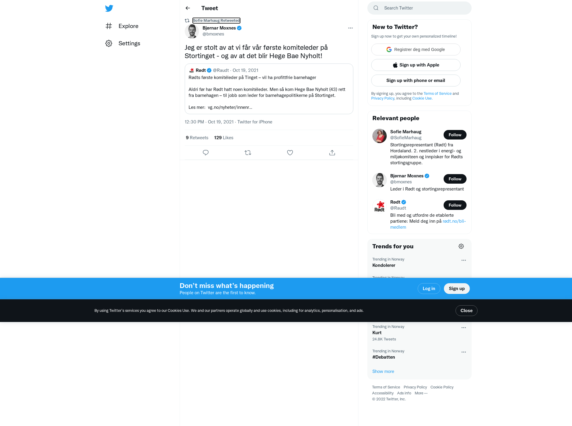 RT @bmoxnes: Jeg er stolt av at vi får vår første komiteleder på Stortinget - og av at det blir Hege Bae Nyholt!