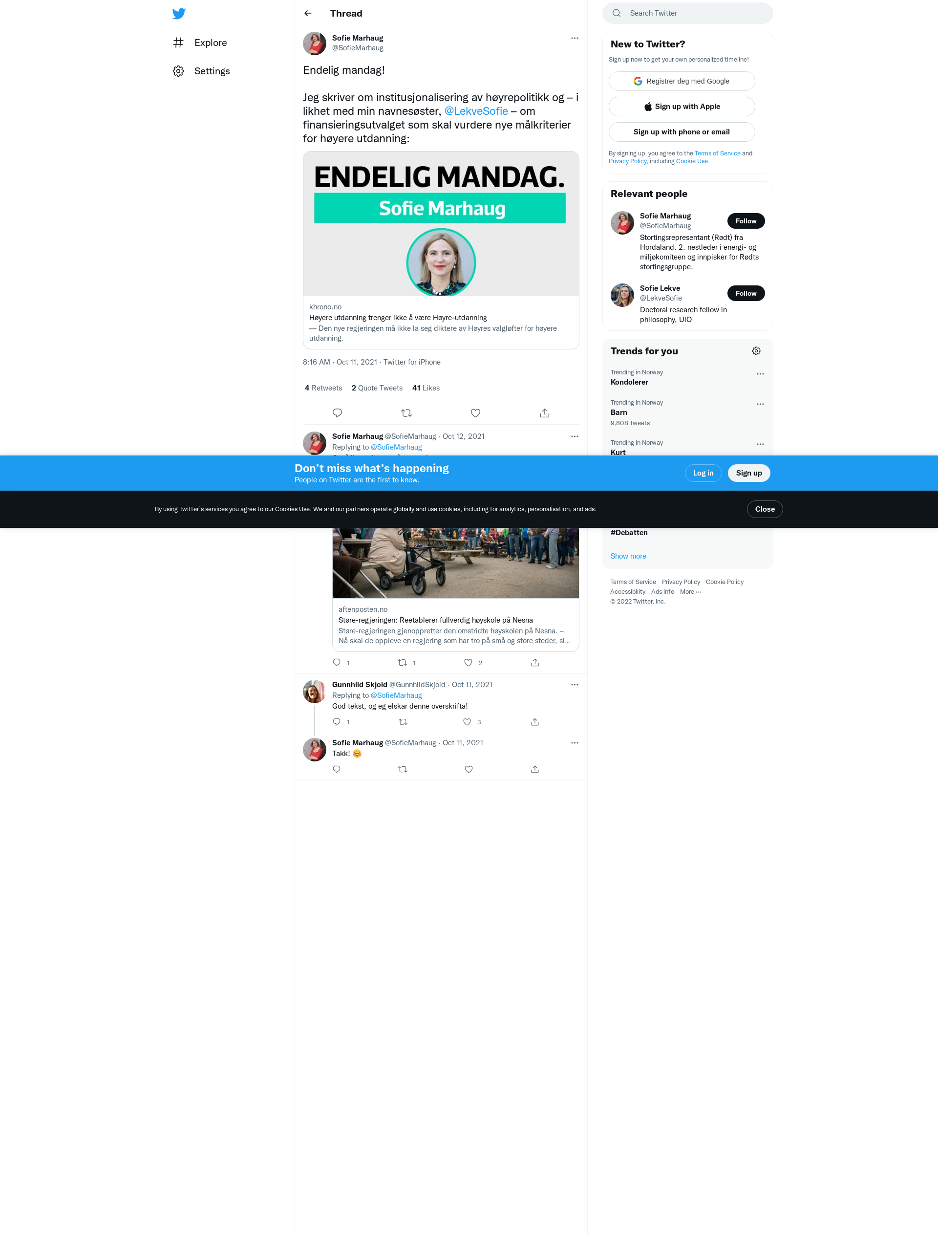 Endelig mandag! \n\nJeg skriver om institusjonalisering av høyrepolitikk og – i likhet med min navnesøster, @LekveSofie – om finansieringsutvalget som skal vurdere nye målkriterier for høyere utdanning:\n\nhttps://t.co/yVSKN2SEcw