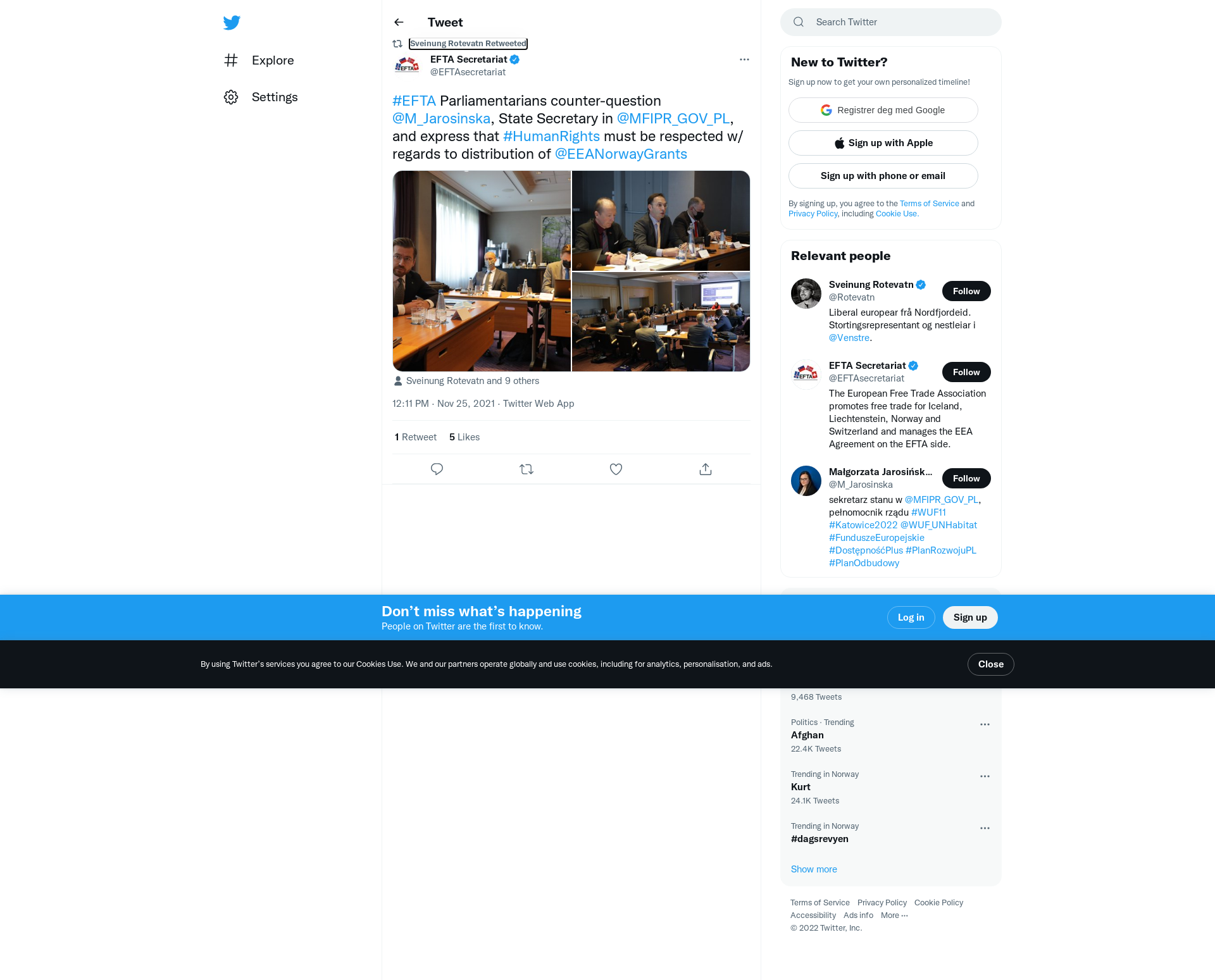 RT @EFTAsecretariat: #EFTA Parliamentarians counter-question @M_Jarosinska, State Secretary in @MFIPR_GOV_PL, and express that #HumanRights must be respected w/ regards to distribution of @EEANorwayGrants https://t.co/aNR0Z3DYne