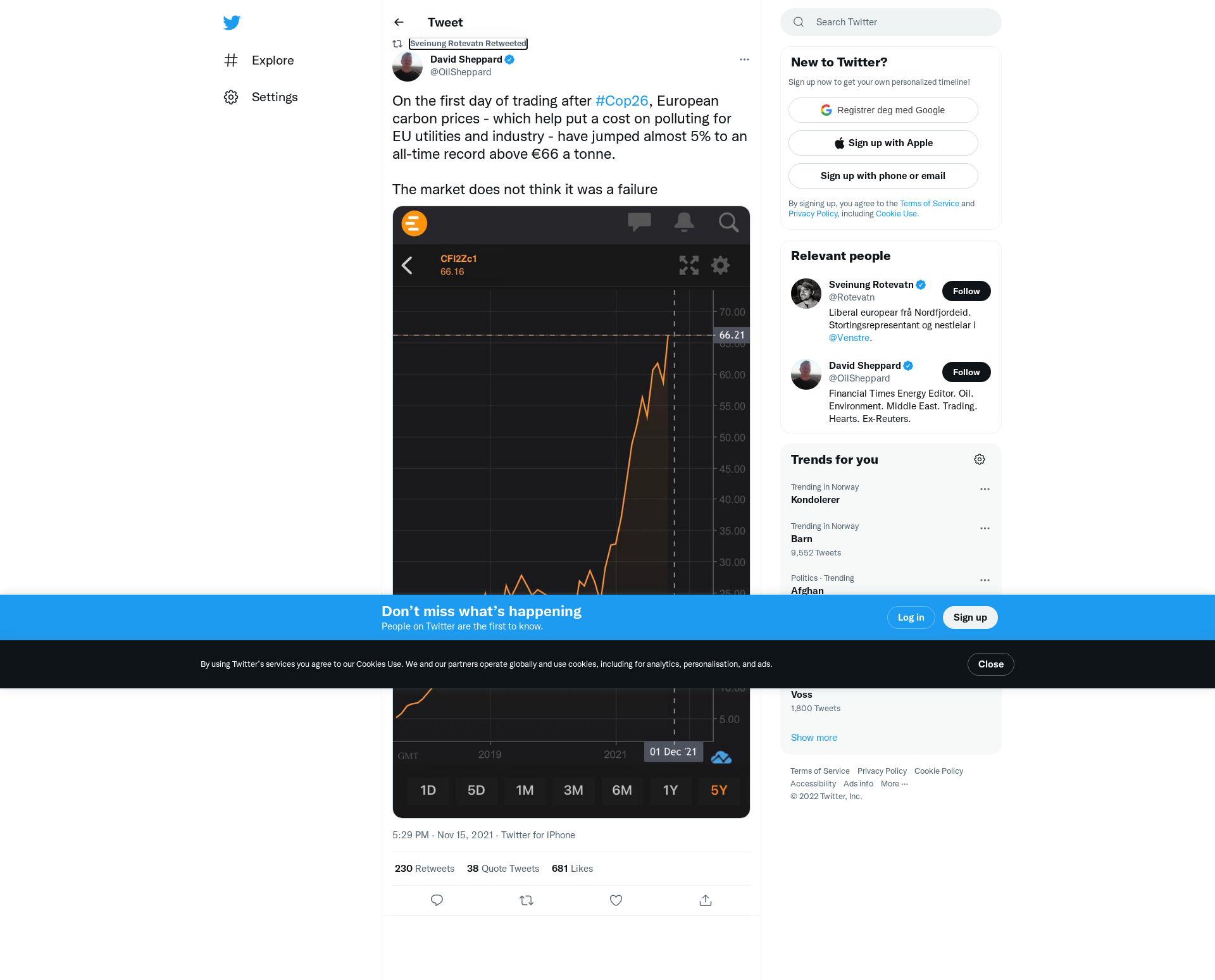 RT @OilSheppard: On the first day of trading after #Cop26, European carbon prices - which help put a cost on polluting for EU utilities and industry - have jumped almost 5% to an all-time record above €66 a tonne. \n\nThe market does not think it was a failure https://t.co/p4GI9tiNby