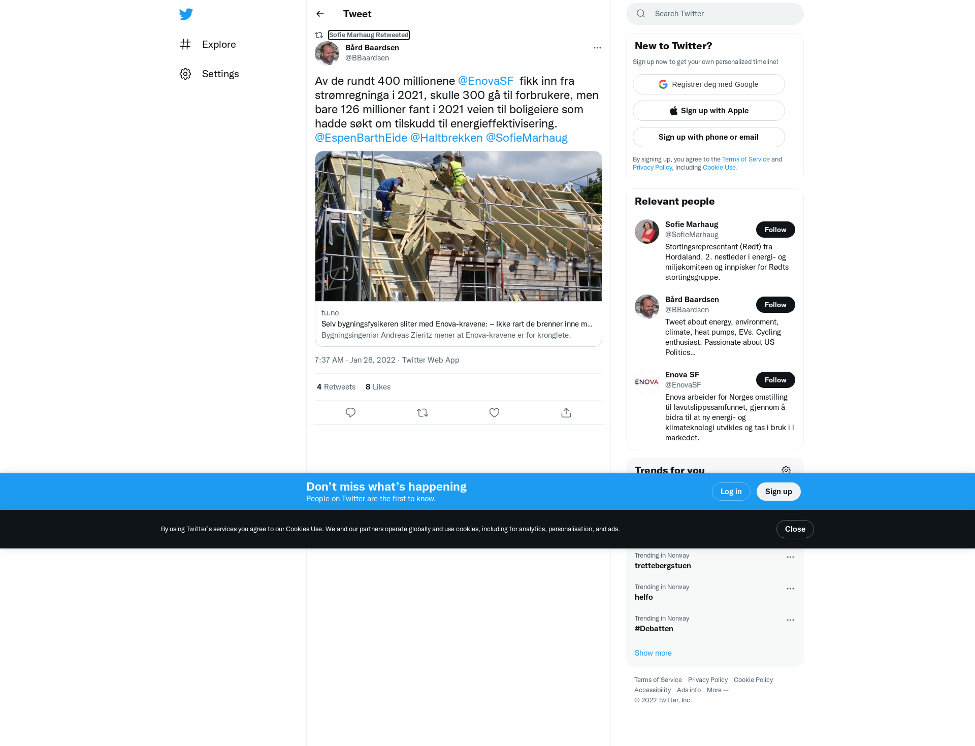 RT @BBaardsen: Av de rundt 400 millionene @EnovaSF fikk inn fra strømregninga i 2021, skulle 300 gå til forbrukere, men bare 126 millioner fant i 2021 veien til boligeiere som hadde søkt om tilskudd til energieffektivisering. @EspenBarthEide @Haltbrekken @SofieMarhaug \nhttps://t.co/ZGaBjidmq6
