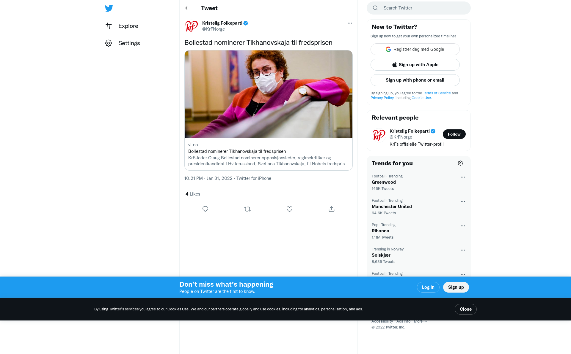 Bollestad nominerer Tikhanovskaja til fredsprisen https://t.co/jel8KJeYLG