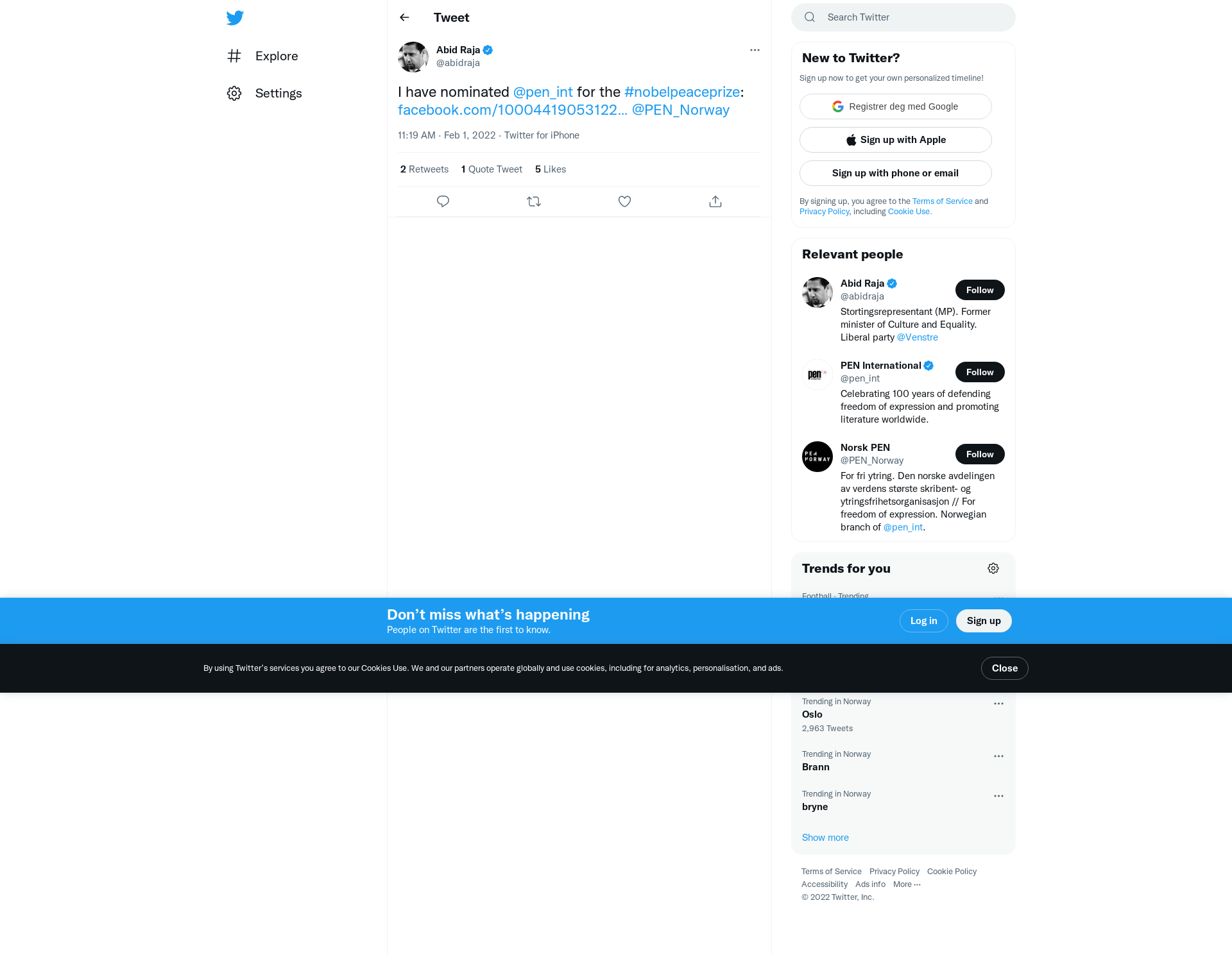 I have nominated @pen_int for the #nobelpeaceprize: https://t.co/nGntKQ8sXT @PEN_Norway