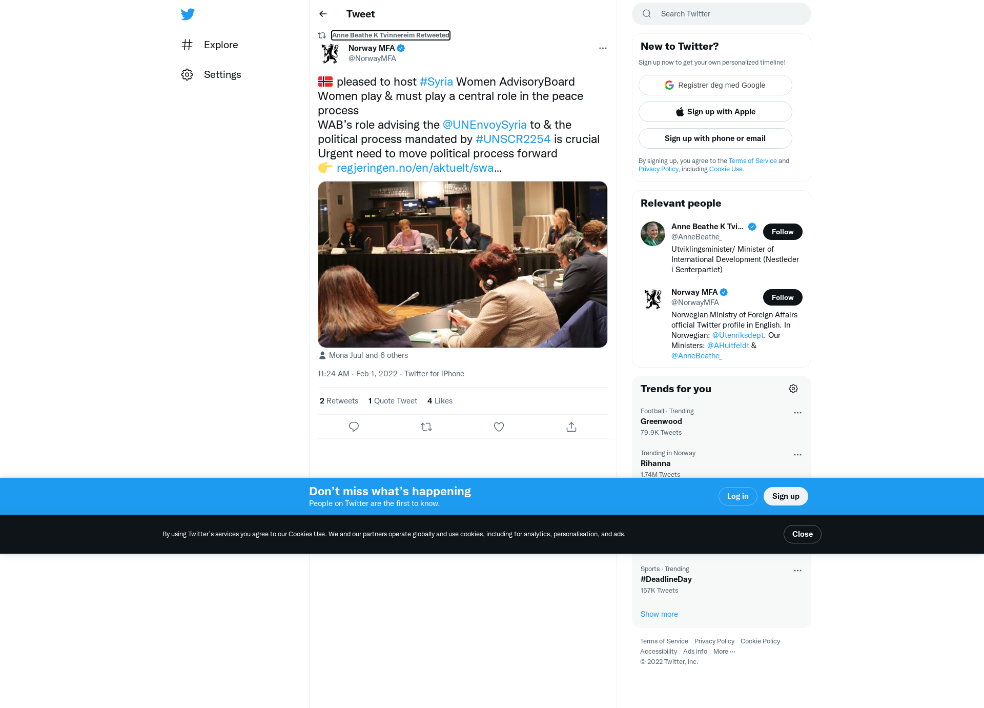 RT @NorwayMFA: 🇳🇴 pleased to host #Syria Women AdvisoryBoard\nWomen play & must play a central role in the peace process\nWAB’s role advising…