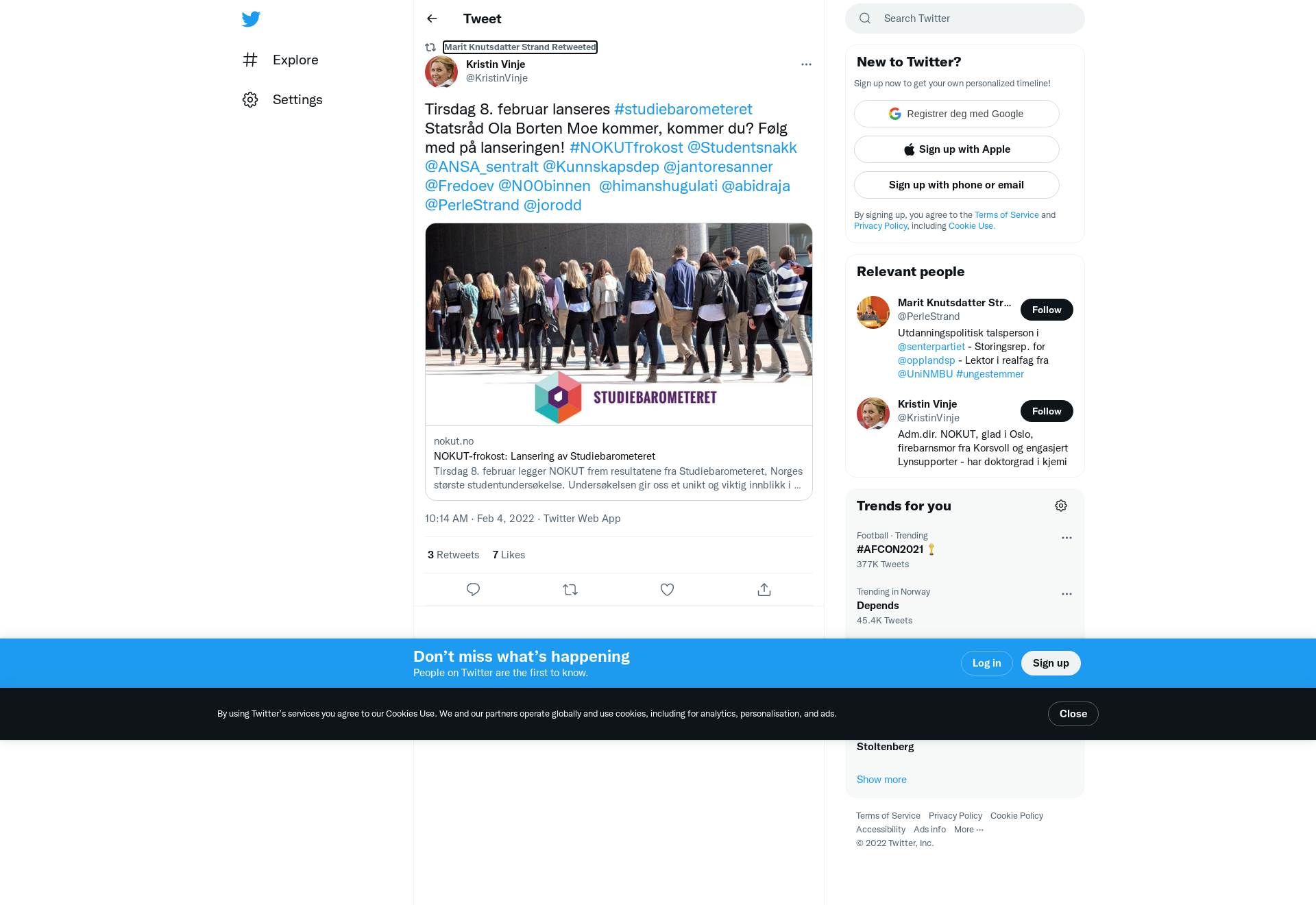 RT @KristinVinje: Tirsdag 8. februar lanseres #studiebarometeret Statsråd Ola Borten Moe kommer, kommer du? Følg med på lanseringen! #NOKUTfrokost @Studentsnakk @ANSA_sentralt @Kunnskapsdep @jantoresanner @Fredoev @N00binnen @himanshugulati @abidraja @PerleStrand @jorodd https://t.co/x6VQA0m9jL