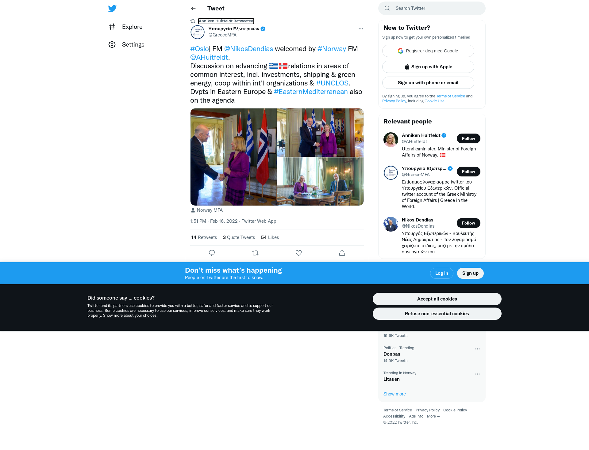 RT @GreeceMFA: #Oslo| FM @NikosDendias welcomed by #Norway FM @AHuitfeldt.\nDiscussion on advancing 🇬🇷🇳🇴relations in areas of common interes…