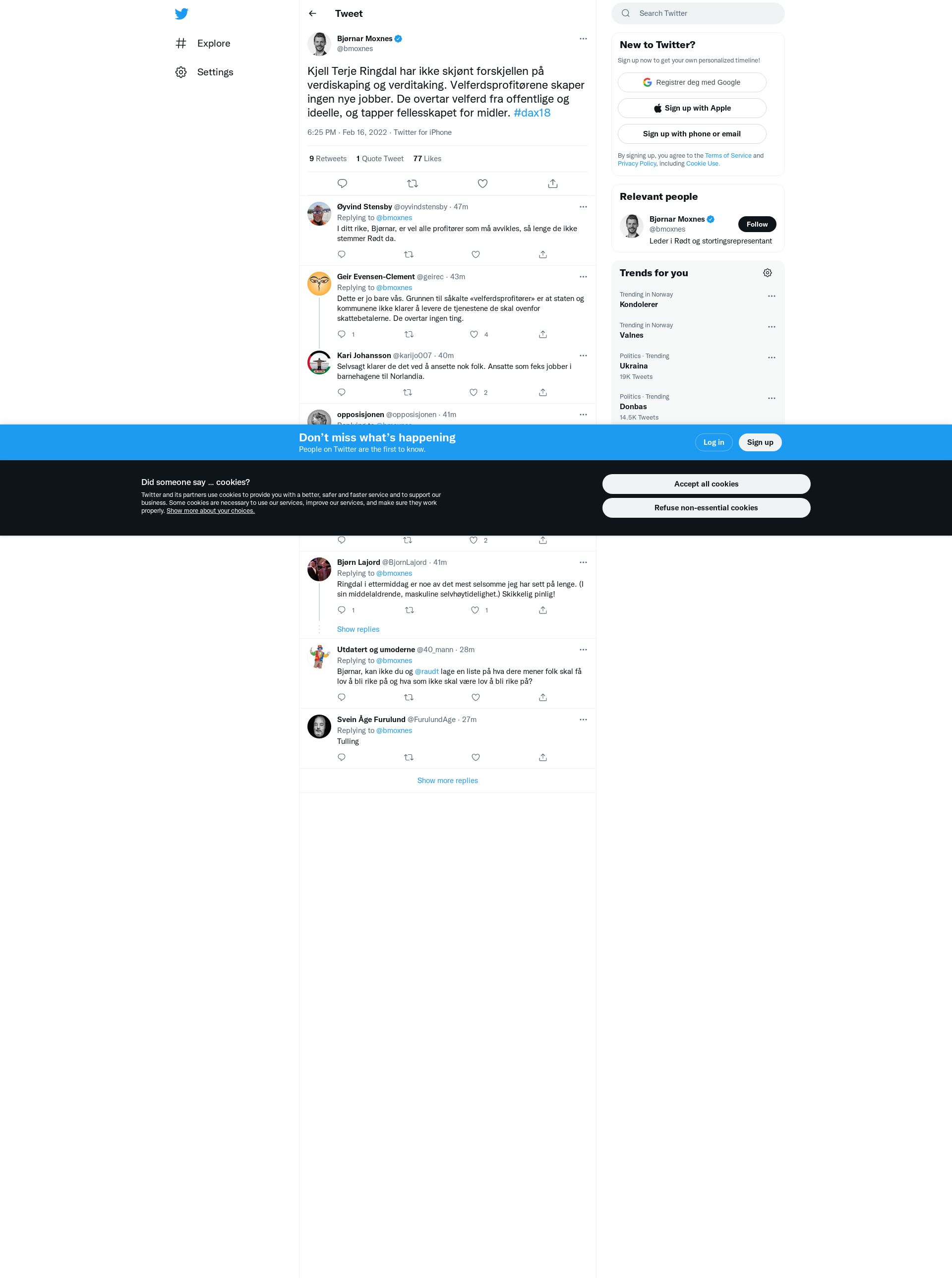 Kjell Terje Ringdal har ikke skjønt forskjellen på verdiskaping og verditaking. Velferdsprofitørene skaper ingen nye jobber. De overtar velferd fra offentlige og ideelle, og tapper fellesskapet for midler. #dax18