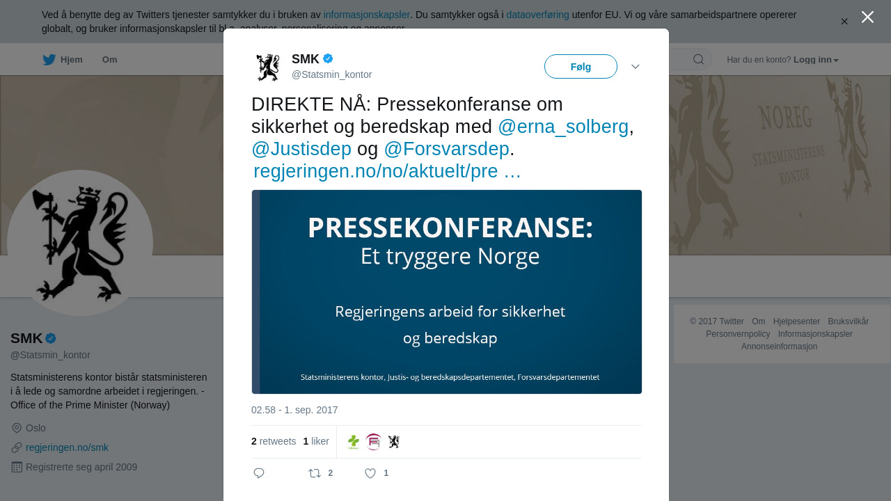 Statsminister Erna Solberg, justis- og beredskapsminister Per-Willy Amundsen og forsvarsminister Ine Eriksen Søreide inviterer til pressekonferanse om regjeringens arbeid for sikkerhet og beredskap 1. september kl. 12.00.