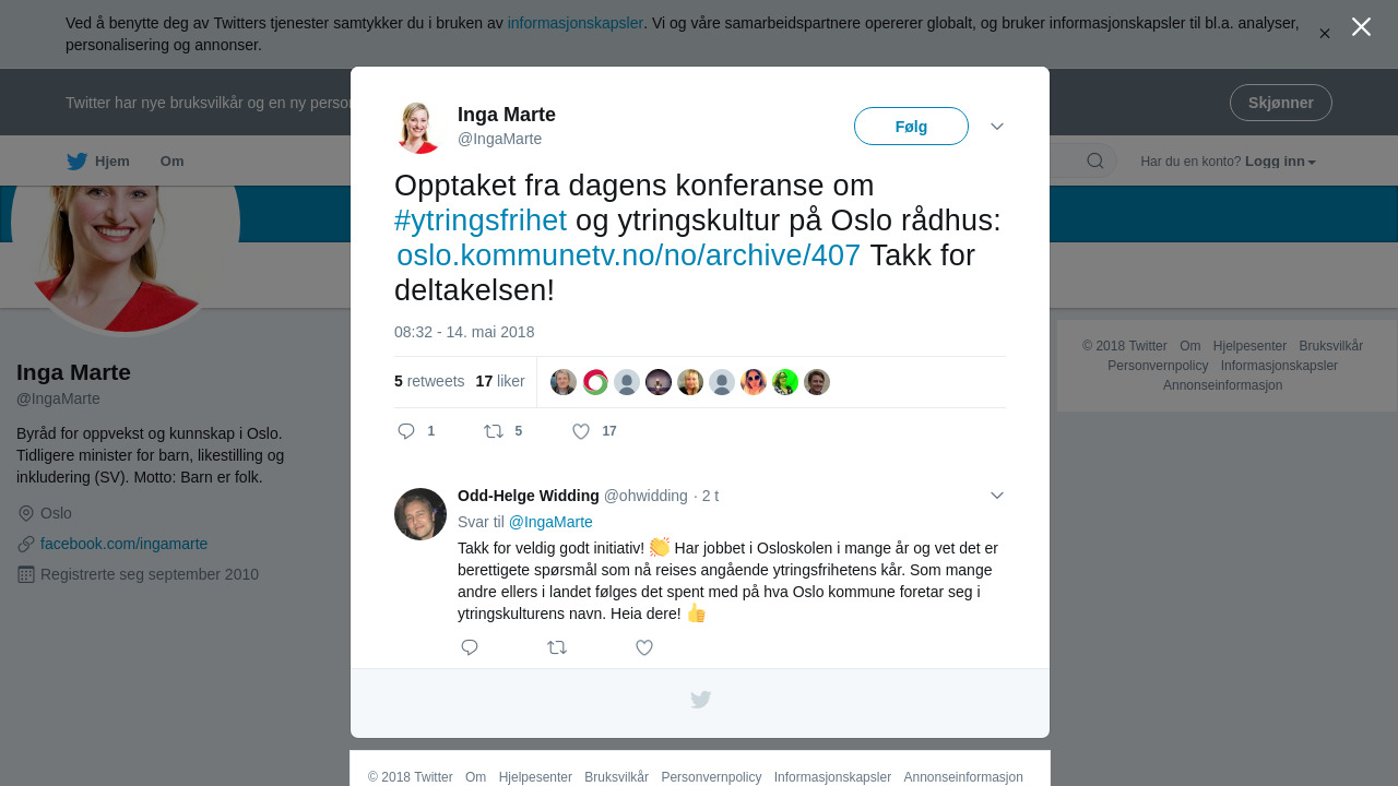 Opptaket fra dagens konferanse om #ytringsfrihet og ytringskultur på Oslo rådhus: https://t.co/X567nm6AWF Takk for deltakelsen!