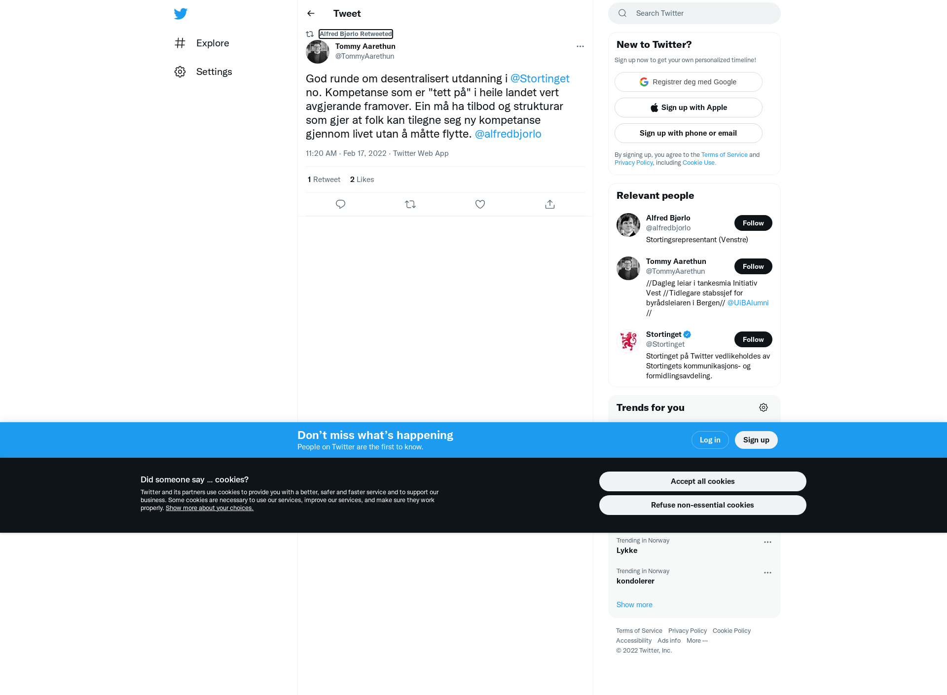 RT @TommyAarethun: God runde om desentralisert utdanning i @Stortinget no. Kompetanse som er "tett på" i heile landet vert avgjerande framover. Ein må ha tilbod og strukturar som gjer at folk kan tilegne seg ny kompetanse gjennom livet utan å måtte flytte. @alfredbjorlo