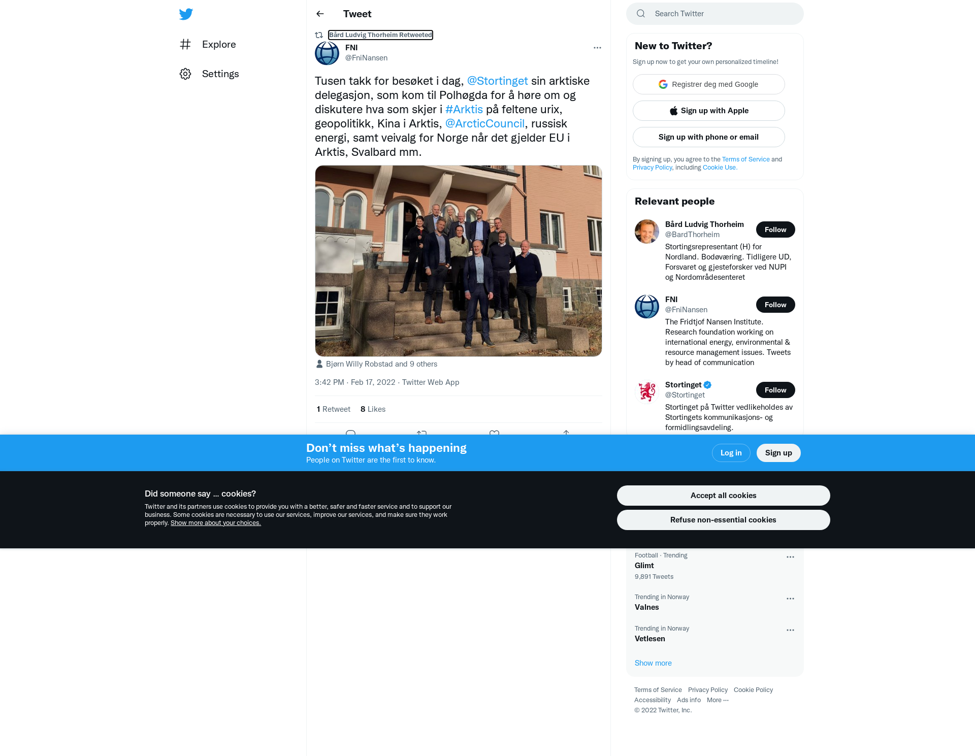 RT @FniNansen: Tusen takk for besøket i dag, @Stortinget sin arktiske delegasjon, som kom til Polhøgda for å høre om og diskutere hva som skjer i #Arktis på feltene urix, geopolitikk, Kina i Arktis, @ArcticCouncil, russisk energi, samt veivalg for Norge når det gjelder EU i Arktis, Svalbard mm. https://t.co/lYQ8mKZFhw