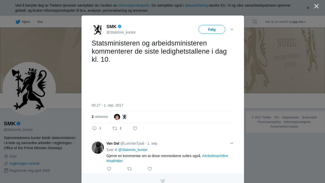 Statsministeren og arbeidsministeren kommenterer de siste ledighetstallene i dag kl. 10. https://t.co/J5qVYQc0ey