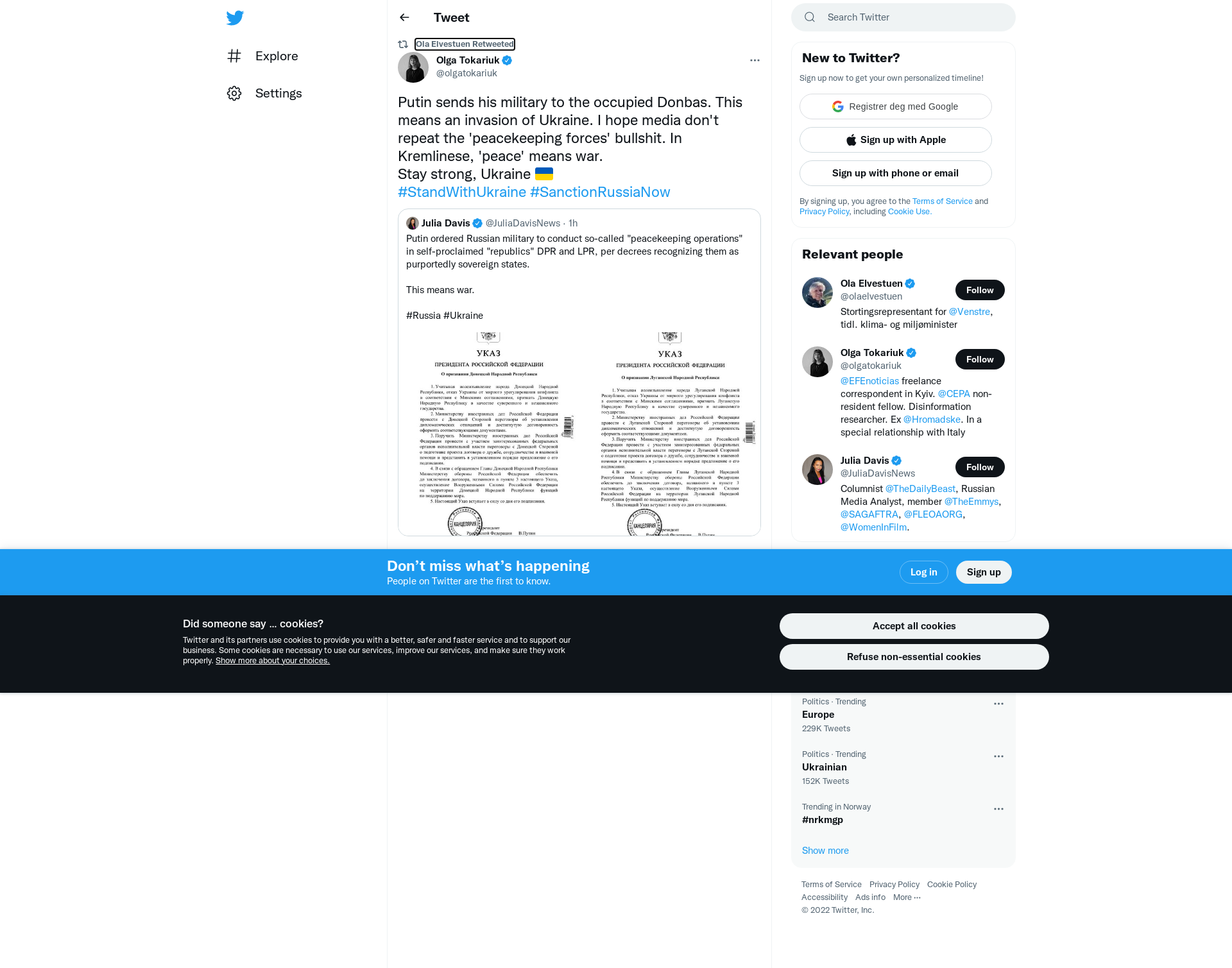 RT @olgatokariuk: Putin sends his military to the occupied Donbas. This means an invasion of Ukraine. I hope media don't repeat the 'peacekeeping forces' bullshit. In Kremlinese, 'peace' means war.\nStay strong, Ukraine 🇺🇦\n#StandWithUkraine #SanctionRussiaNow
