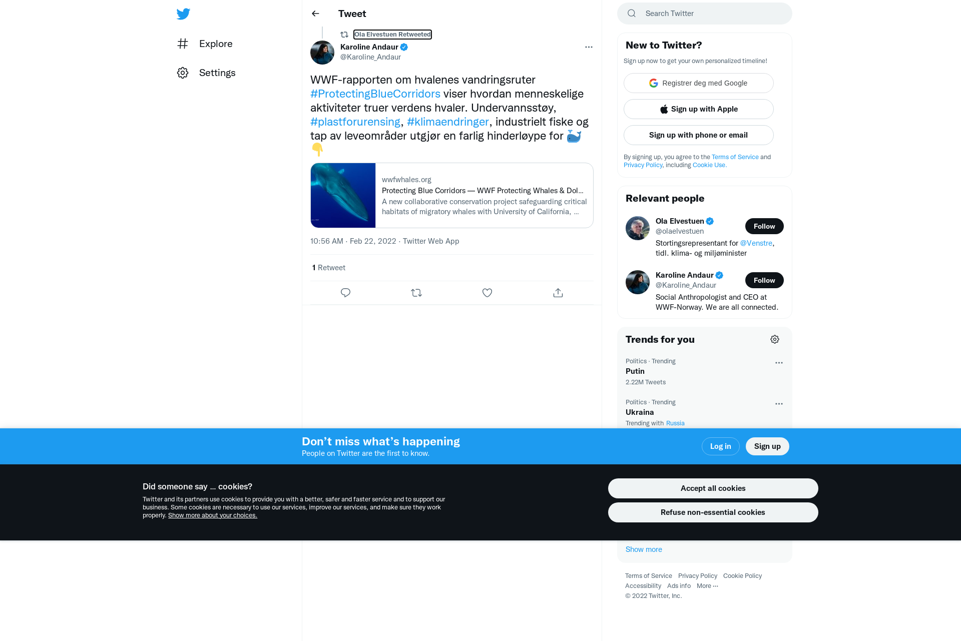 RT @Karoline_Andaur: WWF-rapporten om hvalenes vandringsruter #ProtectingBlueCorridors viser hvordan menneskelige aktiviteter truer verdens hvaler. Undervannsstøy, #plastforurensing, #klimaendringer, industrielt fiske og tap av leveområder utgjør en farlig hinderløype for 🐳 👇https://t.co/FadrhpubT6