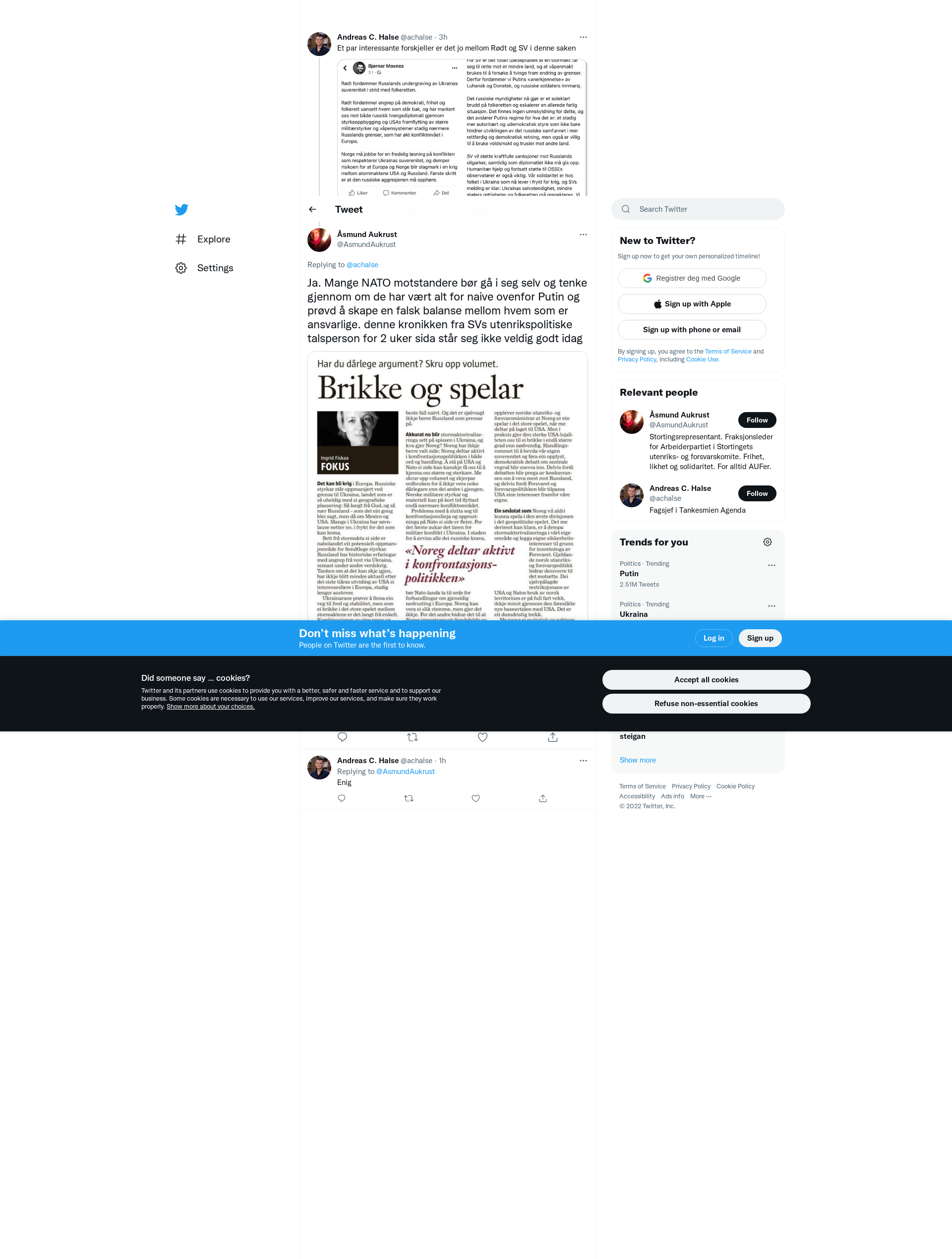 @achalse Ja. Mange NATO motstandere bør gå i seg selv og tenke gjennom om de har vært alt for naive ovenfor Putin og prøvd å skape en falsk balanse mellom hvem som er ansvarlige. denne kronikken fra SVs utenrikspolitiske talsperson for 2 uker sida står seg ikke veldig godt idag https://t.co/bJiT8UOgP3