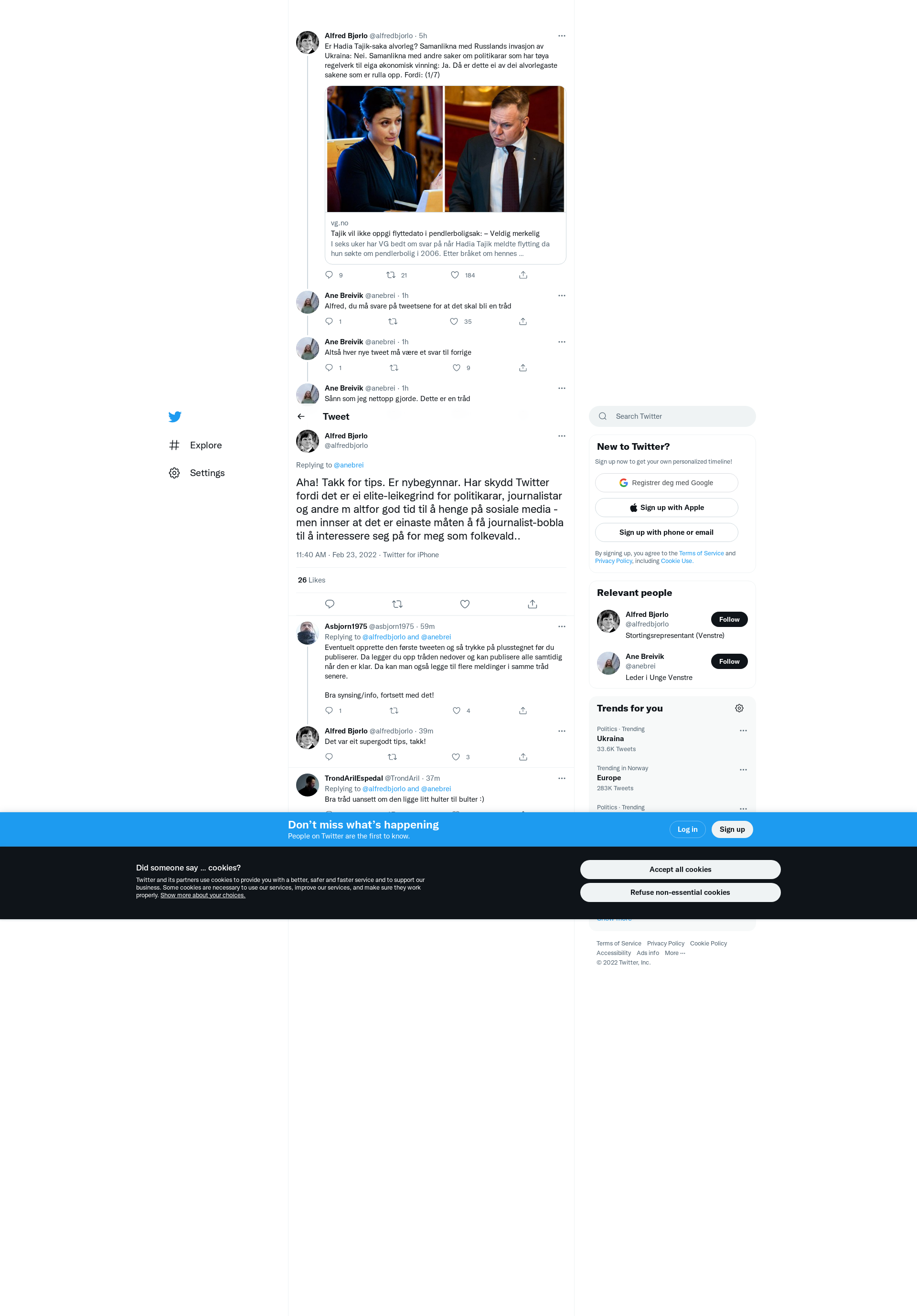 @anebrei Aha! Takk for tips. Er nybegynnar. Har skydd Twitter fordi det er ei elite-leikegrind for politikarar, journalistar og andre m altfor god tid til å henge på sosiale media - men innser at det er einaste måten å få journalist-bobla til å interessere seg på for meg som folkevald..