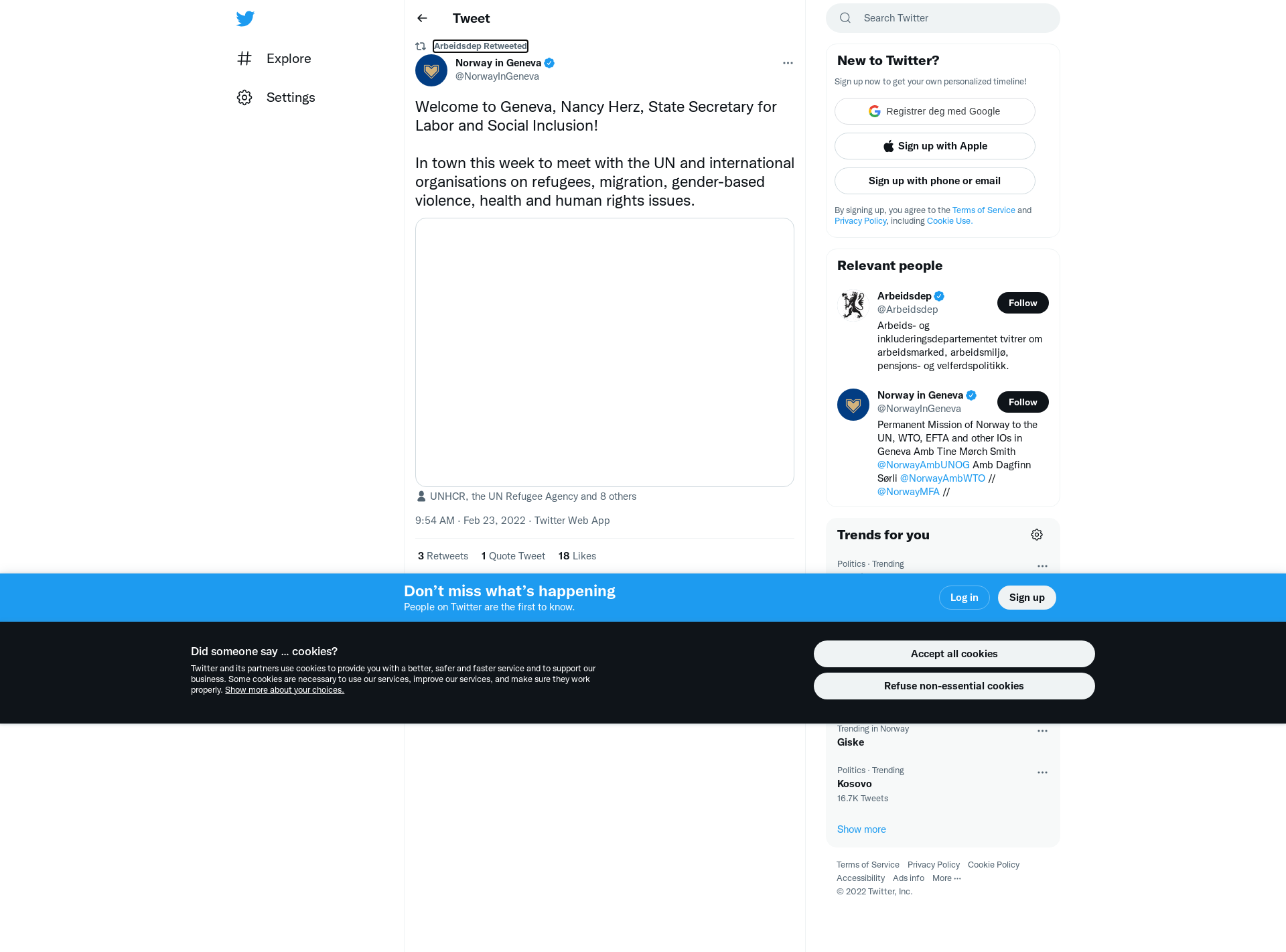 RT @NorwayInGeneva: Welcome to Geneva, Nancy Herz, State Secretary for Labor and Social Inclusion!\n\nIn town this week to meet with the UN a…