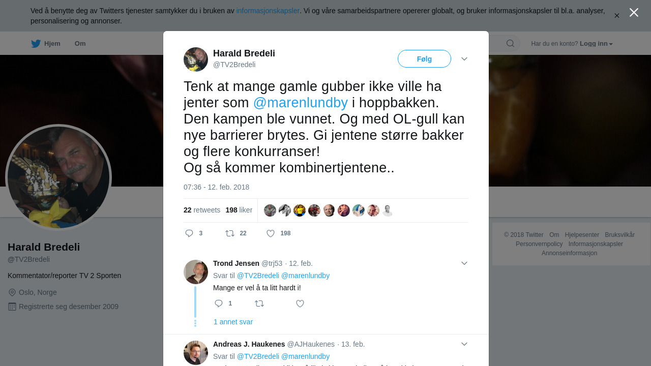 RT @TV2Bredeli: Tenk at mange gamle gubber ikke ville ha jenter som @marenlundby i hoppbakken. Den kampen ble vunnet. Og med OL-gul… https://t.co/0issRVaauM