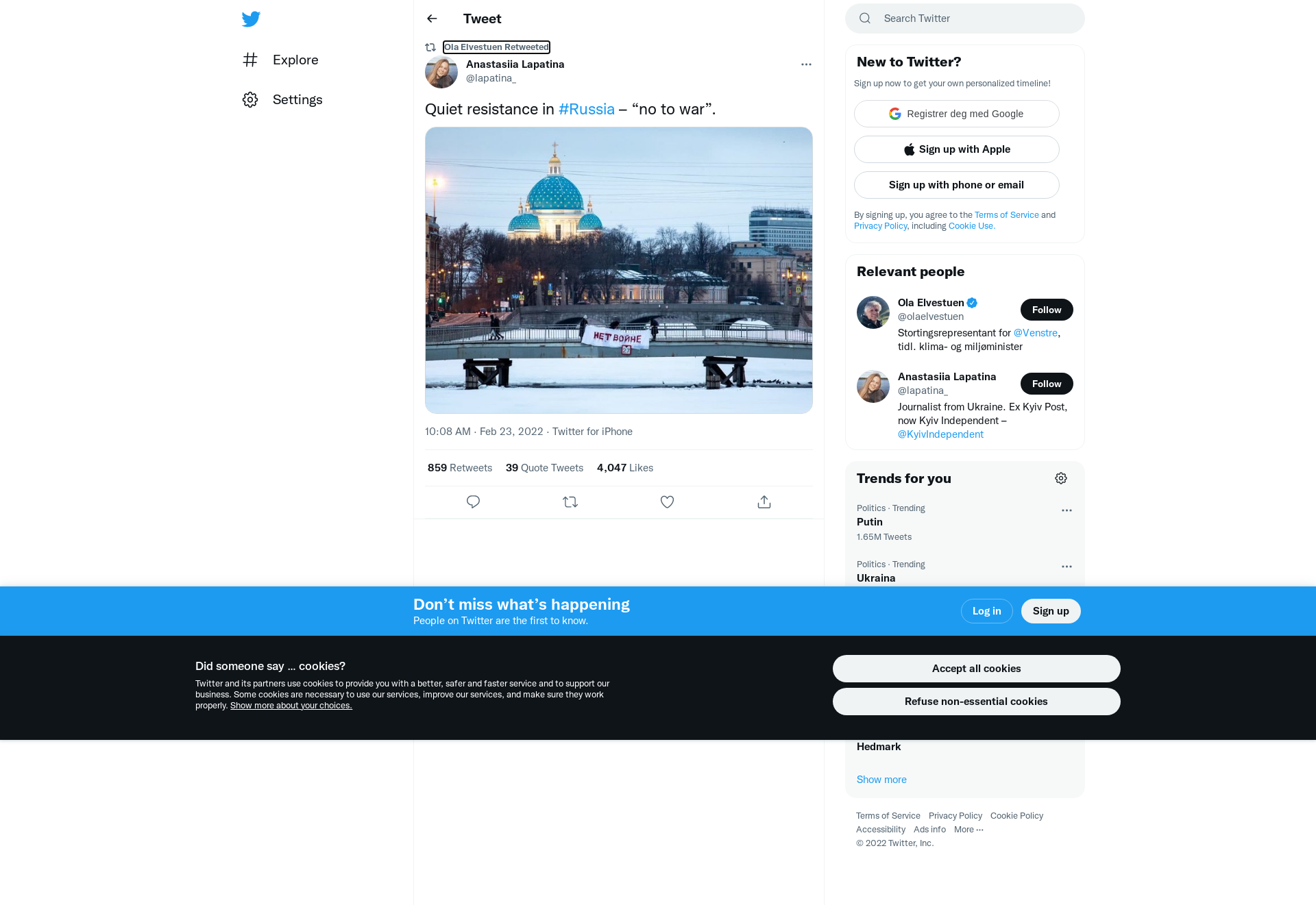 RT @lapatina_: Quiet resistance in #Russia – “no to war”. https://t.co/yHqD5XPI1F